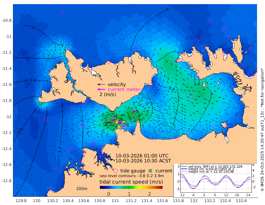 146cm/s 78T +4cm/s rms + 6cm/s 51T. Darwin_C1 52m 103cm/s 93T +4cm/s rms + 7cm/s -161T. Darwin_CW1 22m 87cm/s 72T +4cm/s rms + 8cm/s 61T. Darwin_CW2 34m 74cm/s 47T +3cm/s rms + 9cm/s 98T. Darwin_CW3 22m 139cm/s 89T +5cm/s rms + 7cm/s 88T. Darwin_C3 56m 76cm/s 66T +2cm/s rms + 9cm/s -126T. Darwin_CTbW 22m 19cm/s 75T +1cm/s rms + 1cm/s -47T. DARBGF 30m 13cm/s 84T +4cm/s rms + 3cm/s 80T. NRSDAR 19m -11cm Goodrich Bank 104cm Point Jenny 103cm Native Point 110cm Fish Reef 126cm Tapa Bay 49cm Point Fawcett (Offshore) 119cm Burge Point 120cm Munkunuwa 76cm Beagle A 134cm Parsons Bank 114cm Fenton Patches 138cm Hancox Shoal Area 142cm Nightcliff 148cm Darwin 131cm Charles Point Patches 103cm Glyde Point 86cm Chambers Bay 79cm Point Stuart 88cm Cape Hotham 77cm Christine Reef 87cm West Alligator Head 72cm East Field Island 74cm Two Hills Bay 64cm Camp Point 123cm Medina Inlet South 38cm South Barlow Point 20cm St. Asaph Bay -10cm Cape Van Dieman -4cm Snake Bay -7cm Cache Point 8cm Point Jahleel (Off) 38cm Cape Don 12cm Port Essington 16cm Smith Point - West 11cm NW Peacock Island 3cm North Of Jones Shoal 2cm Peacock Island 22cm Point David 16cm D'urville Point 24cm Copeland Island 21cm One Tree Point