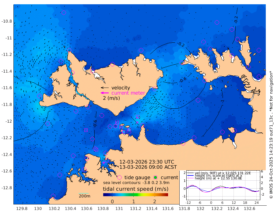 31cm/s -103T +4cm/s rms + 6cm/s 51T. Darwin_C1 52m 41cm/s -92T +4cm/s rms + 7cm/s -161T. Darwin_CW1 22m 2cm/s -75T +4cm/s rms + 8cm/s 61T. Darwin_CW2 34m 34cm/s -144T +3cm/s rms + 9cm/s 98T. Darwin_CW3 22m 21cm/s -84T +5cm/s rms + 7cm/s 88T. Darwin_C3 56m 18cm/s -114T +2cm/s rms + 9cm/s -126T. Darwin_CTbW 22m 12cm/s 98T +1cm/s rms + 1cm/s -47T. DARBGF 30m 15cm/s 124T +4cm/s rms + 3cm/s 80T. NRSDAR 19m 0cm Goodrich Bank -29cm Point Jenny -27cm Native Point -35cm Fish Reef -35cm Tapa Bay -18cm Point Fawcett (Offshore) -32cm Burge Point -9cm Munkunuwa -25cm Beagle A -26cm Parsons Bank -35cm Fenton Patches -39cm Hancox Shoal Area -42cm Nightcliff -45cm Darwin -41cm Charles Point Patches -66cm Glyde Point -95cm Chambers Bay -102cm Point Stuart -73cm Cape Hotham -77cm Christine Reef -111cm West Alligator Head -126cm East Field Island -79cm Two Hills Bay -76cm Camp Point -29cm Medina Inlet South 0cm South Barlow Point -2cm St. Asaph Bay 0cm Cape Van Dieman -3cm Snake Bay -8cm Cache Point -14cm Point Jahleel (Off) -34cm Cape Don -16cm Port Essington -12cm Smith Point - West -15cm NW Peacock Island -15cm North Of Jones Shoal -6cm Peacock Island -30cm Point David -14cm D'urville Point -31cm Copeland Island -30cm One Tree Point