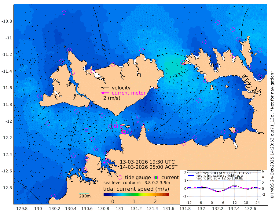 72cm/s -103T +4cm/s rms + 6cm/s 51T. Darwin_C1 52m 26cm/s -89T +4cm/s rms + 7cm/s -161T. Darwin_CW1 22m 27cm/s -104T +4cm/s rms + 8cm/s 61T. Darwin_CW2 34m 24cm/s -119T +3cm/s rms + 9cm/s 98T. Darwin_CW3 22m 35cm/s -90T +5cm/s rms + 7cm/s 88T. Darwin_C3 56m 46cm/s -116T +2cm/s rms + 9cm/s -126T. Darwin_CTbW 22m 18cm/s -93T +1cm/s rms + 1cm/s -47T. DARBGF 30m 16cm/s -70T +4cm/s rms + 3cm/s 80T. NRSDAR 19m -60cm Goodrich Bank -68cm Point Jenny -70cm Native Point -55cm Fish Reef -68cm Tapa Bay -64cm Point Fawcett (Offshore) -61cm Burge Point -63cm Munkunuwa -65cm Beagle A -60cm Parsons Bank -60cm Fenton Patches -57cm Hancox Shoal Area -58cm Nightcliff -58cm Darwin -65cm Charles Point Patches -32cm Glyde Point -3cm Chambers Bay 7cm Point Stuart -16cm Cape Hotham -19cm Christine Reef 11cm West Alligator Head 24cm East Field Island -12cm Two Hills Bay -14cm Camp Point -62cm Medina Inlet South -67cm South Barlow Point -64cm St. Asaph Bay -60cm Cape Van Dieman -60cm Snake Bay -58cm Cache Point -52cm Point Jahleel (Off) -41cm Cape Don -46cm Port Essington -51cm Smith Point - West -48cm NW Peacock Island -46cm North Of Jones Shoal -15cm Peacock Island -32cm Point David -48cm D'urville Point -29cm Copeland Island -33cm One Tree Point