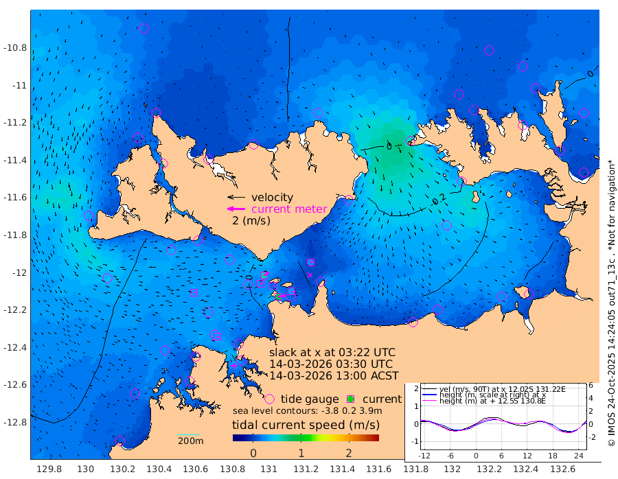 85cm/s 77T +4cm/s rms + 6cm/s 51T. Darwin_C1 52m 30cm/s 93T +4cm/s rms + 7cm/s -161T. Darwin_CW1 22m 24cm/s 72T +4cm/s rms + 8cm/s 61T. Darwin_CW2 34m 23cm/s 63T +3cm/s rms + 9cm/s 98T. Darwin_CW3 22m 13cm/s 87T +5cm/s rms + 7cm/s 88T. Darwin_C3 56m 62cm/s 65T +2cm/s rms + 9cm/s -126T. Darwin_CTbW 22m 27cm/s 93T +1cm/s rms + 1cm/s -47T. DARBGF 30m 27cm/s 119T +4cm/s rms + 3cm/s 80T. NRSDAR 19m 22cm Goodrich Bank 43cm Point Jenny 43cm Native Point 30cm Fish Reef 34cm Tapa Bay 36cm Point Fawcett (Offshore) 26cm Burge Point 34cm Munkunuwa 42cm Beagle A 24cm Parsons Bank 33cm Fenton Patches 23cm Hancox Shoal Area 37cm Nightcliff 14cm Darwin 18cm Charles Point Patches -1cm Glyde Point -18cm Chambers Bay -31cm Point Stuart -12cm Cape Hotham -1cm Christine Reef -33cm West Alligator Head -46cm East Field Island -13cm Two Hills Bay -18cm Camp Point 29cm Medina Inlet South 35cm South Barlow Point 34cm St. Asaph Bay 24cm Cape Van Dieman 20cm Snake Bay 23cm Cache Point 19cm Point Jahleel (Off) 11cm Cape Don 11cm Port Essington 21cm Smith Point - West 15cm NW Peacock Island 16cm North Of Jones Shoal 5cm Peacock Island -5cm Point David 16cm D'urville Point -6cm Copeland Island -2cm One Tree Point