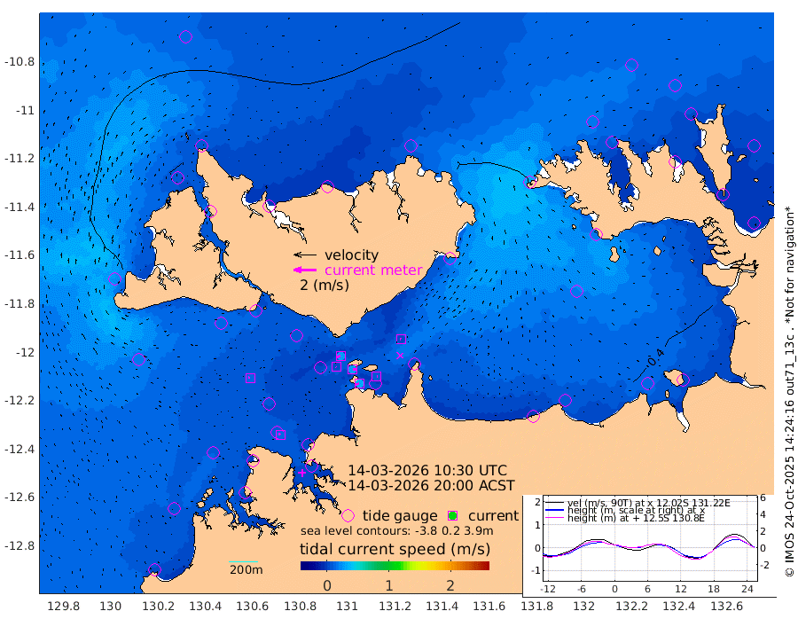 32cm/s -102T +4cm/s rms + 6cm/s 51T. Darwin_C1 52m 9cm/s 83T +4cm/s rms + 7cm/s -161T. Darwin_CW1 22m 2cm/s 154T +4cm/s rms + 8cm/s 61T. Darwin_CW2 34m 5cm/s -79T +3cm/s rms + 9cm/s 98T. Darwin_CW3 22m 28cm/s 91T +5cm/s rms + 7cm/s 88T. Darwin_C3 56m 30cm/s -116T +2cm/s rms + 9cm/s -126T. Darwin_CTbW 22m 14cm/s -79T +1cm/s rms + 1cm/s -47T. DARBGF 30m 16cm/s -54T +4cm/s rms + 3cm/s 80T. NRSDAR 19m 28cm Goodrich Bank 25cm Point Jenny 26cm Native Point 31cm Fish Reef 32cm Tapa Bay 25cm Point Fawcett (Offshore) 39cm Burge Point 27cm Munkunuwa 24cm Beagle A 32cm Parsons Bank 32cm Fenton Patches 31cm Hancox Shoal Area 20cm Nightcliff 47cm Darwin 50cm Charles Point Patches 41cm Glyde Point 37cm Chambers Bay 41cm Point Stuart 36cm Cape Hotham 31cm Christine Reef 43cm West Alligator Head 50cm East Field Island 33cm Two Hills Bay 42cm Camp Point 36cm Medina Inlet South 24cm South Barlow Point 23cm St. Asaph Bay 26cm Cape Van Dieman 26cm Snake Bay 26cm Cache Point 24cm Point Jahleel (Off) 24cm Cape Don 24cm Port Essington 17cm Smith Point - West 18cm NW Peacock Island 18cm North Of Jones Shoal 6cm Peacock Island 16cm Point David 15cm D'urville Point 13cm Copeland Island 17cm One Tree Point