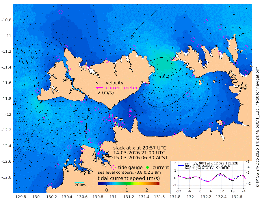 69cm/s -103T +4cm/s rms + 6cm/s 51T. Darwin_C1 52m 17cm/s -85T +4cm/s rms + 7cm/s -161T. Darwin_CW1 22m 13cm/s -99T +4cm/s rms + 8cm/s 61T. Darwin_CW2 34m 21cm/s -121T +3cm/s rms + 9cm/s 98T. Darwin_CW3 22m 12cm/s -88T +5cm/s rms + 7cm/s 88T. Darwin_C3 56m 48cm/s -116T +2cm/s rms + 9cm/s -126T. Darwin_CTbW 22m 23cm/s -88T +1cm/s rms + 1cm/s -47T. DARBGF 30m 24cm/s -60T +4cm/s rms + 3cm/s 80T. NRSDAR 19m -65cm Goodrich Bank -60cm Point Jenny -62cm Native Point -43cm Fish Reef -53cm Tapa Bay -65cm Point Fawcett (Offshore) -42cm Burge Point -43cm Munkunuwa -60cm Beagle A -38cm Parsons Bank -45cm Fenton Patches -37cm Hancox Shoal Area -40cm Nightcliff -31cm Darwin -44cm Charles Point Patches -16cm Glyde Point 8cm Chambers Bay 19cm Point Stuart -2cm Cape Hotham -9cm Christine Reef 25cm West Alligator Head 37cm East Field Island -3cm Two Hills Bay -5cm Camp Point -44cm Medina Inlet South -66cm South Barlow Point -67cm St. Asaph Bay -66cm Cape Van Dieman -65cm Snake Bay -65cm Cache Point -55cm Point Jahleel (Off) -41cm Cape Don -50cm Port Essington -56cm Smith Point - West -53cm NW Peacock Island -52cm North Of Jones Shoal -17cm Peacock Island -36cm Point David -53cm D'urville Point -32cm Copeland Island -37cm One Tree Point