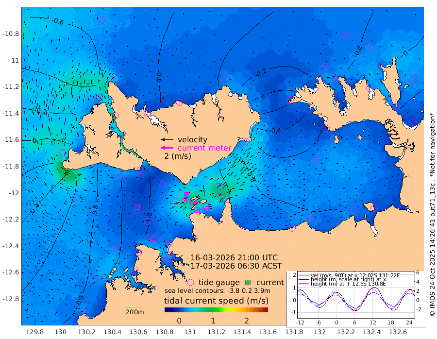 55cm/s 80T +4cm/s rms + 6cm/s 51T. Darwin_C1 52m 51cm/s 93T +4cm/s rms + 7cm/s -161T. Darwin_CW1 22m 49cm/s 69T +4cm/s rms + 8cm/s 61T. Darwin_CW2 34m 45cm/s 40T +3cm/s rms + 9cm/s 98T. Darwin_CW3 22m 73cm/s 89T +5cm/s rms + 7cm/s 88T. Darwin_C3 56m 23cm/s 66T +2cm/s rms + 9cm/s -126T. Darwin_CTbW 22m 9cm/s -58T +1cm/s rms + 1cm/s -47T. DARBGF 30m 16cm/s -47T +4cm/s rms + 3cm/s 80T. NRSDAR 19m -58cm Goodrich Bank 57cm Point Jenny 56cm Native Point 72cm Fish Reef 84cm Tapa Bay -7cm Point Fawcett (Offshore) 91cm Burge Point 71cm Munkunuwa 37cm Beagle A 97cm Parsons Bank 89cm Fenton Patches 107cm Hancox Shoal Area 111cm Nightcliff 120cm Darwin 96cm Charles Point Patches 98cm Glyde Point 105cm Chambers Bay 105cm Point Stuart 95cm Cape Hotham 81cm Christine Reef 115cm West Alligator Head 120cm East Field Island 77cm Two Hills Bay 81cm Camp Point 79cm Medina Inlet South -17cm South Barlow Point -35cm St. Asaph Bay -57cm Cape Van Dieman -50cm Snake Bay -53cm Cache Point -31cm Point Jahleel (Off) 10cm Cape Don -22cm Port Essington -25cm Smith Point - West -23cm NW Peacock Island -35cm North Of Jones Shoal -10cm Peacock Island 12cm Point David -19cm D'urville Point 17cm Copeland Island 5cm One Tree Point