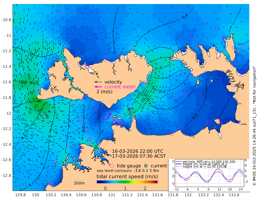 4cm/s -138T +4cm/s rms + 6cm/s 51T. Darwin_C1 52m 22cm/s 88T +4cm/s rms + 7cm/s -161T. Darwin_CW1 22m 20cm/s 64T +4cm/s rms + 8cm/s 61T. Darwin_CW2 34m 19cm/s 32T +3cm/s rms + 9cm/s 98T. Darwin_CW3 22m 39cm/s 89T +5cm/s rms + 7cm/s 88T. Darwin_C3 56m 9cm/s -118T +2cm/s rms + 9cm/s -126T. Darwin_CTbW 22m 34cm/s -82T +1cm/s rms + 1cm/s -47T. DARBGF 30m 44cm/s -54T +4cm/s rms + 3cm/s 80T. NRSDAR 19m -79cm Goodrich Bank -16cm Point Jenny -17cm Native Point 3cm Fish Reef 8cm Tapa Bay -58cm Point Fawcett (Offshore) 18cm Burge Point 2cm Munkunuwa -30cm Beagle A 28cm Parsons Bank 15cm Fenton Patches 40cm Hancox Shoal Area 35cm Nightcliff 50cm Darwin 25cm Charles Point Patches 58cm Glyde Point 92cm Chambers Bay 103cm Point Stuart 69cm Cape Hotham 68cm Christine Reef 118cm West Alligator Head 136cm East Field Island 64cm Two Hills Bay 63cm Camp Point 10cm Medina Inlet South -63cm South Barlow Point -73cm St. Asaph Bay -81cm Cape Van Dieman -75cm Snake Bay -76cm Cache Point -54cm Point Jahleel (Off) -17cm Cape Don -47cm Port Essington -51cm Smith Point - West -47cm NW Peacock Island -55cm North Of Jones Shoal -17cm Peacock Island -15cm Point David -46cm D'urville Point -9cm Copeland Island -19cm One Tree Point