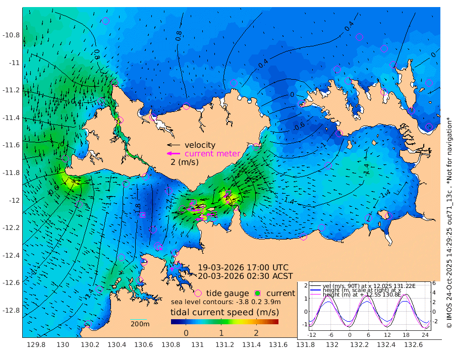 138cm/s -101T +4cm/s rms + 6cm/s 51T. Darwin_C1 52m 115cm/s -92T +4cm/s rms + 7cm/s -161T. Darwin_CW1 22m 66cm/s -106T +4cm/s rms + 8cm/s 61T. Darwin_CW2 34m 93cm/s -137T +3cm/s rms + 9cm/s 98T. Darwin_CW3 22m 127cm/s -90T +5cm/s rms + 7cm/s 88T. Darwin_C3 56m 69cm/s -116T +2cm/s rms + 9cm/s -126T. Darwin_CTbW 22m 29cm/s 109T +1cm/s rms + 1cm/s -47T. DARBGF 30m 40cm/s 138T +4cm/s rms + 3cm/s 80T. NRSDAR 19m 69cm Goodrich Bank -105cm Point Jenny -104cm Native Point -124cm Fish Reef -141cm Tapa Bay 2cm Point Fawcett (Offshore) -167cm Burge Point -123cm Munkunuwa -78cm Beagle A -170cm Parsons Bank -160cm Fenton Patches -182cm Hancox Shoal Area -189cm Nightcliff -206cm Darwin -161cm Charles Point Patches -182cm Glyde Point -198cm Chambers Bay -207cm Point Stuart -174cm Cape Hotham -179cm Christine Reef -231cm West Alligator Head -245cm East Field Island -157cm Two Hills Bay -157cm Camp Point -139cm Medina Inlet South 11cm South Barlow Point 40cm St. Asaph Bay 71cm Cape Van Dieman 59cm Snake Bay 63cm Cache Point 28cm Point Jahleel (Off) -38cm Cape Don 23cm Port Essington 24cm Smith Point - West 23cm NW Peacock Island 42cm North Of Jones Shoal 13cm Peacock Island -15cm Point David 19cm D'urville Point -21cm Copeland Island -10cm One Tree Point