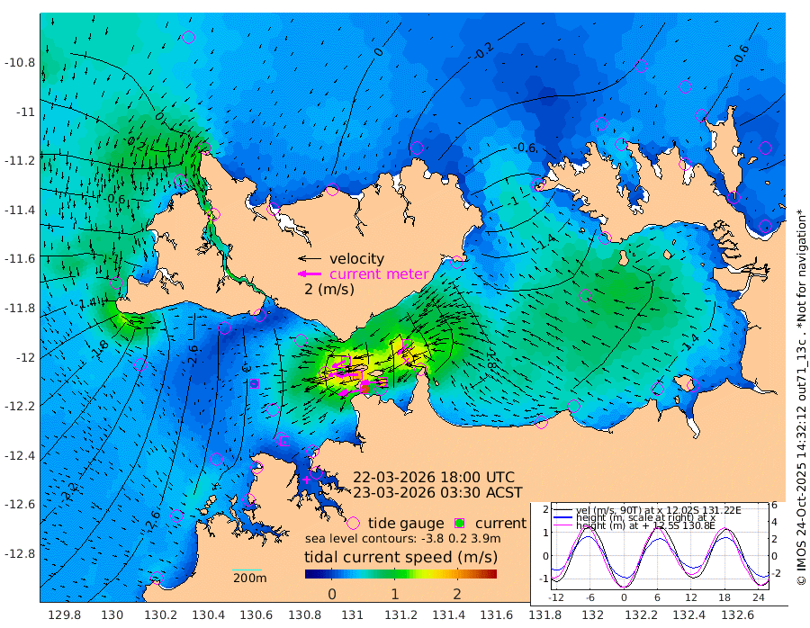 230cm/s -101T +4cm/s rms + 6cm/s 51T. Darwin_C1 52m 181cm/s -91T +4cm/s rms + 7cm/s -161T. Darwin_CW1 22m 111cm/s -106T +4cm/s rms + 8cm/s 61T. Darwin_CW2 34m 121cm/s -136T +3cm/s rms + 9cm/s 98T. Darwin_CW3 22m 193cm/s -90T +5cm/s rms + 7cm/s 88T. Darwin_C3 56m 127cm/s -115T +2cm/s rms + 9cm/s -126T. Darwin_CTbW 22m 11cm/s -157T +1cm/s rms + 1cm/s -47T. DARBGF 30m 17cm/s 172T +4cm/s rms + 3cm/s 80T. NRSDAR 19m 11cm Goodrich Bank -220cm Point Jenny -218cm Native Point -235cm Fish Reef -258cm Tapa Bay -91cm Point Fawcett (Offshore) -284cm Burge Point -228cm Munkunuwa -183cm Beagle A -286cm Parsons Bank -272cm Fenton Patches -292cm Hancox Shoal Area -295cm Nightcliff -322cm Darwin -282cm Charles Point Patches -261cm Glyde Point -239cm Chambers Bay -242cm Point Stuart -236cm Cape Hotham -226cm Christine Reef -261cm West Alligator Head -257cm East Field Island -209cm Two Hills Bay -205cm Camp Point -250cm Medina Inlet South -74cm South Barlow Point -34cm St. Asaph Bay 9cm Cape Van Dieman -4cm Snake Bay -3cm Cache Point -34cm Point Jahleel (Off) -110cm Cape Don -48cm Port Essington -50cm Smith Point - West -50cm NW Peacock Island -18cm North Of Jones Shoal -10cm Peacock Island -89cm Point David -58cm D'urville Point -93cm Copeland Island -82cm One Tree Point