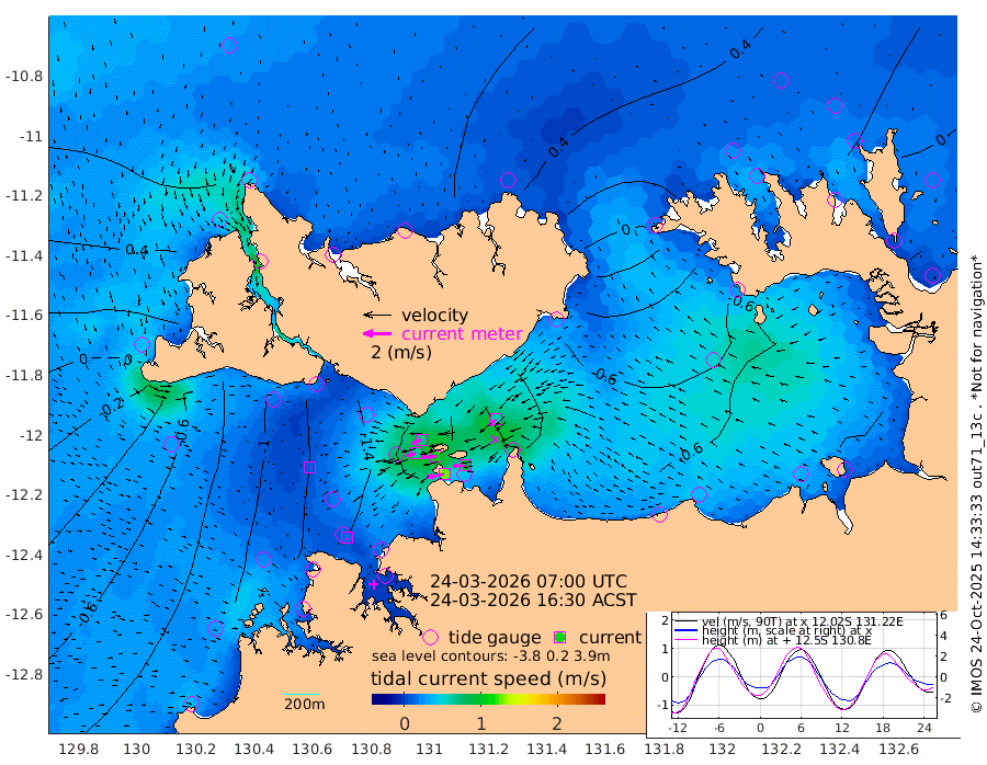 127cm/s -101T +4cm/s rms + 6cm/s 51T. Darwin_C1 52m 87cm/s -90T +4cm/s rms + 7cm/s -161T. Darwin_CW1 22m 64cm/s -107T +4cm/s rms + 8cm/s 61T. Darwin_CW2 34m 62cm/s -134T +3cm/s rms + 9cm/s 98T. Darwin_CW3 22m 107cm/s -91T +5cm/s rms + 7cm/s 88T. Darwin_C3 56m 70cm/s -115T +2cm/s rms + 9cm/s -126T. Darwin_CTbW 22m 7cm/s 138T +1cm/s rms + 1cm/s -47T. DARBGF 30m 13cm/s 167T +4cm/s rms + 3cm/s 80T. NRSDAR 19m 81cm Goodrich Bank -54cm Point Jenny -53cm Native Point -64cm Fish Reef -77cm Tapa Bay 27cm Point Fawcett (Offshore) -91cm Burge Point -85cm Munkunuwa -21cm Beagle A -111cm Parsons Bank -78cm Fenton Patches -107cm Hancox Shoal Area -103cm Nightcliff -113cm Darwin -76cm Charles Point Patches -90cm Glyde Point -93cm Chambers Bay -104cm Point Stuart -86cm Cape Hotham -85cm Christine Reef -119cm West Alligator Head -111cm East Field Island -78cm Two Hills Bay -60cm Camp Point -76cm Medina Inlet South 30cm South Barlow Point 57cm St. Asaph Bay 79cm Cape Van Dieman 72cm Snake Bay 76cm Cache Point 49cm Point Jahleel (Off) -4cm Cape Don 37cm Port Essington 35cm Smith Point - West 36cm NW Peacock Island 58cm North Of Jones Shoal 17cm Peacock Island 2cm Point David 29cm D'urville Point -4cm Copeland Island 9cm One Tree Point