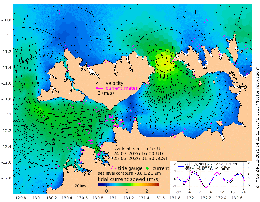 125cm/s -102T +4cm/s rms + 6cm/s 51T. Darwin_C1 52m 86cm/s -88T +4cm/s rms + 7cm/s -161T. Darwin_CW1 22m 90cm/s -107T +4cm/s rms + 8cm/s 61T. Darwin_CW2 34m 32cm/s -117T +3cm/s rms + 9cm/s 98T. Darwin_CW3 22m 111cm/s -93T +5cm/s rms + 7cm/s 88T. Darwin_C3 56m 73cm/s -116T +2cm/s rms + 9cm/s -126T. Darwin_CTbW 22m 84cm/s -90T +1cm/s rms + 1cm/s -47T. DARBGF 30m 79cm/s -59T +4cm/s rms + 3cm/s 80T. NRSDAR 19m -127cm Goodrich Bank -196cm Point Jenny -198cm Native Point -201cm Fish Reef -200cm Tapa Bay -194cm Point Fawcett (Offshore) -197cm Burge Point -210cm Munkunuwa -194cm Beagle A -185cm Parsons Bank -186cm Fenton Patches -160cm Hancox Shoal Area -178cm Nightcliff -189cm Darwin -208cm Charles Point Patches -77cm Glyde Point 39cm Chambers Bay 67cm Point Stuart -33cm Cape Hotham 28cm Christine Reef 88cm West Alligator Head 138cm East Field Island 5cm Two Hills Bay 0cm Camp Point -207cm Medina Inlet South -186cm South Barlow Point -171cm St. Asaph Bay -134cm Cape Van Dieman -137cm Snake Bay -127cm Cache Point -111cm Point Jahleel (Off) -88cm Cape Don -108cm Port Essington -110cm Smith Point - West -99cm NW Peacock Island -109cm North Of Jones Shoal -37cm Peacock Island -67cm Point David -103cm D'urville Point -60cm Copeland Island -76cm One Tree Point
