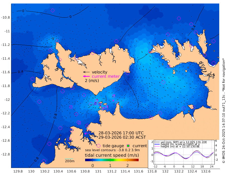 69cm/s 78T +4cm/s rms + 6cm/s 51T. Darwin_C1 52m 33cm/s 85T +4cm/s rms + 7cm/s -161T. Darwin_CW1 22m 20cm/s 74T +4cm/s rms + 8cm/s 61T. Darwin_CW2 34m 34cm/s 44T +3cm/s rms + 9cm/s 98T. Darwin_CW3 22m 18cm/s 90T +5cm/s rms + 7cm/s 88T. Darwin_C3 56m 42cm/s 64T +2cm/s rms + 9cm/s -126T. Darwin_CTbW 22m 14cm/s 91T +1cm/s rms + 1cm/s -47T. DARBGF 30m 13cm/s 116T +4cm/s rms + 3cm/s 80T. NRSDAR 19m -10cm Goodrich Bank 63cm Point Jenny 59cm Native Point 69cm Fish Reef 66cm Tapa Bay 30cm Point Fawcett (Offshore) 69cm Burge Point 53cm Munkunuwa 52cm Beagle A 74cm Parsons Bank 69cm Fenton Patches 72cm Hancox Shoal Area 70cm Nightcliff 73cm Darwin 66cm Charles Point Patches 64cm Glyde Point 61cm Chambers Bay 63cm Point Stuart 63cm Cape Hotham 51cm Christine Reef 64cm West Alligator Head 57cm East Field Island 57cm Two Hills Bay 46cm Camp Point 59cm Medina Inlet South 16cm South Barlow Point 5cm St. Asaph Bay -5cm Cape Van Dieman -4cm Snake Bay 3cm Cache Point 10cm Point Jahleel (Off) 38cm Cape Don 25cm Port Essington 26cm Smith Point - West 28cm NW Peacock Island 13cm North Of Jones Shoal 7cm Peacock Island 52cm Point David 34cm D'urville Point 56cm Copeland Island 47cm One Tree Point