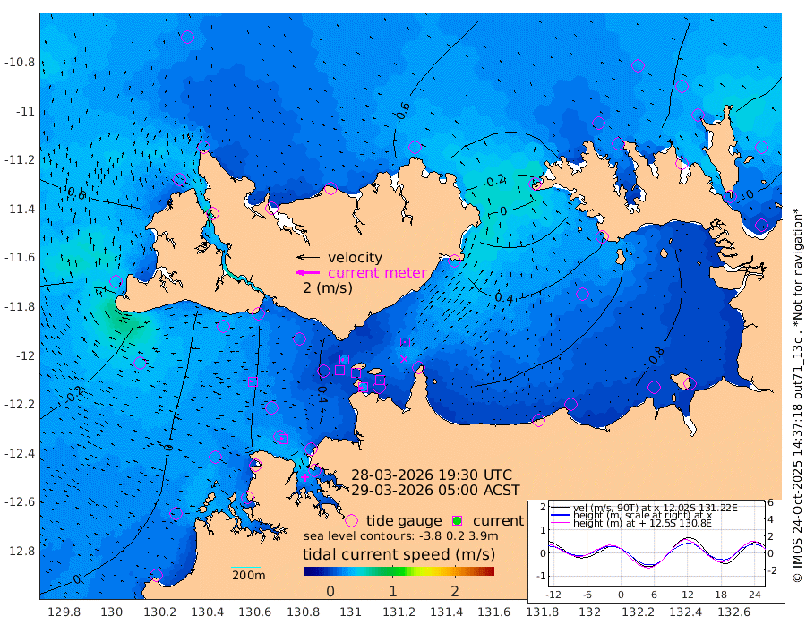 30cm/s -105T +4cm/s rms + 6cm/s 51T. Darwin_C1 52m 4cm/s -85T +4cm/s rms + 7cm/s -161T. Darwin_CW1 22m 3cm/s -78T +4cm/s rms + 8cm/s 61T. Darwin_CW2 34m 10cm/s -11T +3cm/s rms + 9cm/s 98T. Darwin_CW3 22m 2cm/s -92T +5cm/s rms + 7cm/s 88T. Darwin_C3 56m 21cm/s -115T +2cm/s rms + 9cm/s -126T. Darwin_CTbW 22m 23cm/s -85T +1cm/s rms + 1cm/s -47T. DARBGF 30m 23cm/s -60T +4cm/s rms + 3cm/s 80T. NRSDAR 19m -67cm Goodrich Bank 2cm Point Jenny -1cm Native Point 7cm Fish Reef 11cm Tapa Bay -50cm Point Fawcett (Offshore) 27cm Burge Point -2cm Munkunuwa -4cm Beagle A 23cm Parsons Bank 30cm Fenton Patches 33cm Hancox Shoal Area 29cm Nightcliff 31cm Darwin 14cm Charles Point Patches 45cm Glyde Point 74cm Chambers Bay 79cm Point Stuart 52cm Cape Hotham 62cm Christine Reef 88cm West Alligator Head 104cm East Field Island 45cm Two Hills Bay 51cm Camp Point 2cm Medina Inlet South -54cm South Barlow Point -62cm St. Asaph Bay -67cm Cape Van Dieman -69cm Snake Bay -61cm Cache Point -46cm Point Jahleel (Off) -14cm Cape Don -38cm Port Essington -39cm Smith Point - West -36cm NW Peacock Island -53cm North Of Jones Shoal -16cm Peacock Island -8cm Point David -33cm D'urville Point -2cm Copeland Island -17cm One Tree Point