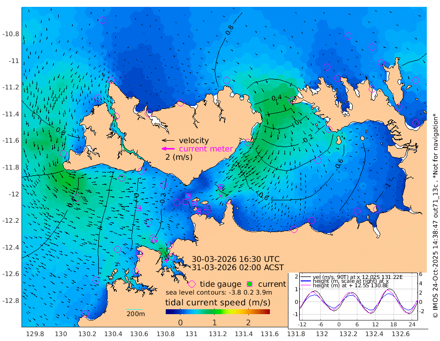 20cm/s 79T +4cm/s rms + 6cm/s 51T. Darwin_C1 52m 13cm/s -77T +4cm/s rms + 7cm/s -161T. Darwin_CW1 22m 4cm/s -125T +4cm/s rms + 8cm/s 61T. Darwin_CW2 34m 23cm/s -153T +3cm/s rms + 9cm/s 98T. Darwin_CW3 22m 29cm/s -89T +5cm/s rms + 7cm/s 88T. Darwin_C3 56m 25cm/s 61T +2cm/s rms + 9cm/s -126T. Darwin_CTbW 22m 48cm/s 97T +1cm/s rms + 1cm/s -47T. DARBGF 30m 51cm/s 127T +4cm/s rms + 3cm/s 80T. NRSDAR 19m 64cm Goodrich Bank 24cm Point Jenny 23cm Native Point 18cm Fish Reef 11cm Tapa Bay 70cm Point Fawcett (Offshore) -12cm Burge Point 15cm Munkunuwa 27cm Beagle A -5cm Parsons Bank -11cm Fenton Patches -16cm Hancox Shoal Area -11cm Nightcliff -22cm Darwin 1cm Charles Point Patches -46cm Glyde Point -83cm Chambers Bay -97cm Point Stuart -51cm Cape Hotham -81cm Christine Reef -115cm West Alligator Head -142cm East Field Island -53cm Two Hills Bay -62cm Camp Point 11cm Medina Inlet South 64cm South Barlow Point 70cm St. Asaph Bay 70cm Cape Van Dieman 70cm Snake Bay 67cm Cache Point 51cm Point Jahleel (Off) 25cm Cape Don 56cm Port Essington 58cm Smith Point - West 56cm NW Peacock Island 66cm North Of Jones Shoal 24cm Peacock Island 47cm Point David 59cm D'urville Point 44cm Copeland Island 49cm One Tree Point