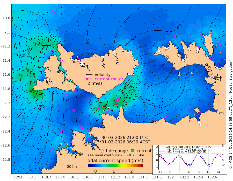 63cm/s 80T +4cm/s rms + 6cm/s 51T. Darwin_C1 52m 62cm/s 91T +4cm/s rms + 7cm/s -161T. Darwin_CW1 22m 54cm/s 70T +4cm/s rms + 8cm/s 61T. Darwin_CW2 34m 49cm/s 40T +3cm/s rms + 9cm/s 98T. Darwin_CW3 22m 84cm/s 89T +5cm/s rms + 7cm/s 88T. Darwin_C3 56m 27cm/s 65T +2cm/s rms + 9cm/s -126T. Darwin_CTbW 22m 13cm/s -62T +1cm/s rms + 1cm/s -47T. DARBGF 30m 23cm/s -48T +4cm/s rms + 3cm/s 80T. NRSDAR 19m -55cm Goodrich Bank 95cm Point Jenny 91cm Native Point 111cm Fish Reef 118cm Tapa Bay 8cm Point Fawcett (Offshore) 144cm Burge Point 104cm Munkunuwa 73cm Beagle A 140cm Parsons Bank 135cm Fenton Patches 146cm Hancox Shoal Area 145cm Nightcliff 162cm Darwin 133cm Charles Point Patches 137cm Glyde Point 143cm Chambers Bay 148cm Point Stuart 132cm Cape Hotham 127cm Christine Reef 162cm West Alligator Head 168cm East Field Island 112cm Two Hills Bay 113cm Camp Point 113cm Medina Inlet South -5cm South Barlow Point -28cm St. Asaph Bay -54cm Cape Van Dieman -52cm Snake Bay -45cm Cache Point -23cm Point Jahleel (Off) 32cm Cape Don -10cm Port Essington -13cm Smith Point - West -11cm NW Peacock Island -31cm North Of Jones Shoal -8cm Peacock Island 21cm Point David -6cm D'urville Point 28cm Copeland Island 16cm One Tree Point