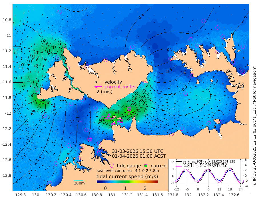 118cm/s -101T +4cm/s rms + 6cm/s 51T. Darwin_C1 52m 106cm/s -92T +4cm/s rms + 7cm/s -161T. Darwin_CW1 22m 68cm/s -107T +4cm/s rms + 8cm/s 61T. Darwin_CW2 34m 78cm/s -137T +3cm/s rms + 9cm/s 98T. Darwin_CW3 22m 115cm/s -91T +5cm/s rms + 7cm/s 88T. Darwin_C3 56m 56cm/s -116T +2cm/s rms + 9cm/s -126T. Darwin_CTbW 22m 12cm/s 132T +1cm/s rms + 1cm/s -47T. DARBGF 30m 18cm/s 149T +4cm/s rms + 3cm/s 80T. NRSDAR 19m 46cm Goodrich Bank -132cm Point Jenny -130cm Native Point -154cm Fish Reef -157cm Tapa Bay -29cm Point Fawcett (Offshore) -192cm Burge Point -147cm Munkunuwa -115cm Beagle A -182cm Parsons Bank -185cm Fenton Patches -182cm Hancox Shoal Area -188cm Nightcliff -210cm Darwin -176cm Charles Point Patches -173cm Glyde Point -163cm Chambers Bay -172cm Point Stuart -157cm Cape Hotham -151cm Christine Reef -189cm West Alligator Head -195cm East Field Island -134cm Two Hills Bay -135cm Camp Point -157cm Medina Inlet South -18cm South Barlow Point 11cm St. Asaph Bay 45cm Cape Van Dieman 41cm Snake Bay 38cm Cache Point 13cm Point Jahleel (Off) -44cm Cape Don 6cm Port Essington 8cm Smith Point - West 10cm NW Peacock Island 32cm North Of Jones Shoal 9cm Peacock Island -12cm Point David 5cm D'urville Point -17cm Copeland Island -9cm One Tree Point