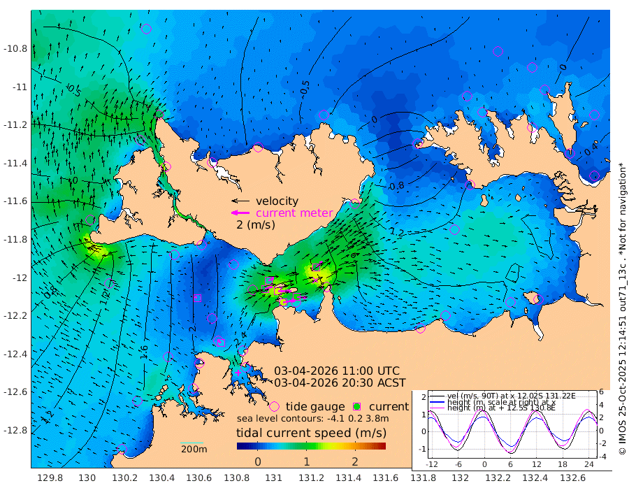 143cm/s 79T +4cm/s rms + 6cm/s 51T. Darwin_C1 52m 112cm/s 92T +4cm/s rms + 7cm/s -161T. Darwin_CW1 22m 85cm/s 71T +4cm/s rms + 8cm/s 61T. Darwin_CW2 34m 93cm/s 46T +3cm/s rms + 9cm/s 98T. Darwin_CW3 22m 145cm/s 90T +5cm/s rms + 7cm/s 88T. Darwin_C3 56m 65cm/s 65T +2cm/s rms + 9cm/s -126T. Darwin_CTbW 22m 25cm/s -67T +1cm/s rms + 1cm/s -47T. DARBGF 30m 43cm/s -46T +4cm/s rms + 3cm/s 80T. NRSDAR 19m -71cm Goodrich Bank 97cm Point Jenny 95cm Native Point 124cm Fish Reef 129cm Tapa Bay -4cm Point Fawcett (Offshore) 159cm Burge Point 121cm Munkunuwa 66cm Beagle A 168cm Parsons Bank 145cm Fenton Patches 167cm Hancox Shoal Area 160cm Nightcliff 198cm Darwin 157cm Charles Point Patches 172cm Glyde Point 176cm Chambers Bay 193cm Point Stuart 160cm Cape Hotham 154cm Christine Reef 214cm West Alligator Head 221cm East Field Island 147cm Two Hills Bay 140cm Camp Point 135cm Medina Inlet South -11cm South Barlow Point -46cm St. Asaph Bay -71cm Cape Van Dieman -61cm Snake Bay -63cm Cache Point -32cm Point Jahleel (Off) 41cm Cape Don -13cm Port Essington -19cm Smith Point - West -17cm NW Peacock Island -43cm North Of Jones Shoal -12cm Peacock Island 22cm Point David -11cm D'urville Point 28cm Copeland Island 19cm One Tree Point
