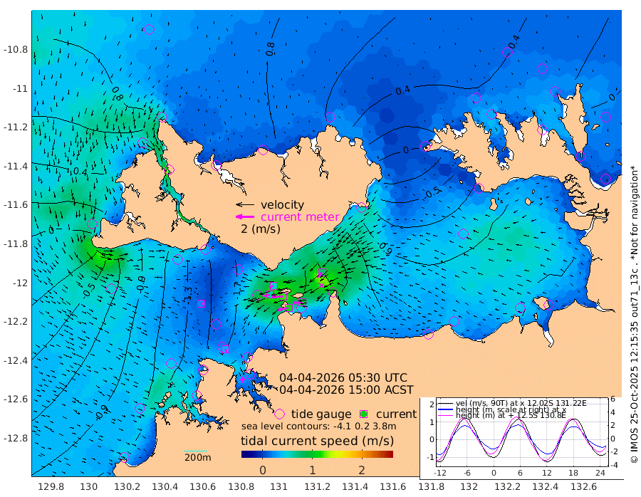 117cm/s -100T +4cm/s rms + 6cm/s 51T. Darwin_C1 52m 98cm/s -92T +4cm/s rms + 7cm/s -161T. Darwin_CW1 22m 61cm/s -106T +4cm/s rms + 8cm/s 61T. Darwin_CW2 34m 74cm/s -135T +3cm/s rms + 9cm/s 98T. Darwin_CW3 22m 122cm/s -91T +5cm/s rms + 7cm/s 88T. Darwin_C3 56m 51cm/s -116T +2cm/s rms + 9cm/s -126T. Darwin_CTbW 22m 23cm/s 111T +1cm/s rms + 1cm/s -47T. DARBGF 30m 31cm/s 142T +4cm/s rms + 3cm/s 80T. NRSDAR 19m 83cm Goodrich Bank -62cm Point Jenny -60cm Native Point -82cm Fish Reef -93cm Tapa Bay 21cm Point Fawcett (Offshore) -106cm Burge Point -91cm Munkunuwa -25cm Beagle A -123cm Parsons Bank -92cm Fenton Patches -127cm Hancox Shoal Area -116cm Nightcliff -145cm Darwin -109cm Charles Point Patches -125cm Glyde Point -142cm Chambers Bay -155cm Point Stuart -121cm Cape Hotham -118cm Christine Reef -175cm West Alligator Head -179cm East Field Island -113cm Two Hills Bay -100cm Camp Point -94cm Medina Inlet South 34cm South Barlow Point 59cm St. Asaph Bay 83cm Cape Van Dieman 77cm Snake Bay 76cm Cache Point 47cm Point Jahleel (Off) -14cm Cape Don 33cm Port Essington 37cm Smith Point - West 37cm NW Peacock Island 57cm North Of Jones Shoal 17cm Peacock Island 1cm Point David 32cm D'urville Point -5cm Copeland Island 6cm One Tree Point