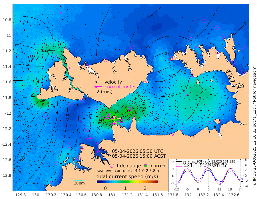 133cm/s -101T +4cm/s rms + 6cm/s 51T. Darwin_C1 52m 111cm/s -91T +4cm/s rms + 7cm/s -161T. Darwin_CW1 22m 74cm/s -106T +4cm/s rms + 8cm/s 61T. Darwin_CW2 34m 69cm/s -135T +3cm/s rms + 9cm/s 98T. Darwin_CW3 22m 134cm/s -91T +5cm/s rms + 7cm/s 88T. Darwin_C3 56m 67cm/s -116T +2cm/s rms + 9cm/s -126T. Darwin_CTbW 22m 7cm/s 168T +1cm/s rms + 1cm/s -47T. DARBGF 30m 13cm/s 174T +4cm/s rms + 3cm/s 80T. NRSDAR 19m 69cm Goodrich Bank -78cm Point Jenny -76cm Native Point -97cm Fish Reef -108cm Tapa Bay 3cm Point Fawcett (Offshore) -117cm Burge Point -108cm Munkunuwa -43cm Beagle A -136cm Parsons Bank -106cm Fenton Patches -136cm Hancox Shoal Area -131cm Nightcliff -155cm Darwin -123cm Charles Point Patches -118cm Glyde Point -115cm Chambers Bay -120cm Point Stuart -106cm Cape Hotham -95cm Christine Reef -134cm West Alligator Head -128cm East Field Island -93cm Two Hills Bay -81cm Camp Point -110cm Medina Inlet South 12cm South Barlow Point 40cm St. Asaph Bay 67cm Cape Van Dieman 60cm Snake Bay 64cm Cache Point 37cm Point Jahleel (Off) -18cm Cape Don 22cm Port Essington 23cm Smith Point - West 25cm NW Peacock Island 44cm North Of Jones Shoal 13cm Peacock Island -6cm Point David 18cm D'urville Point -12cm Copeland Island -2cm One Tree Point