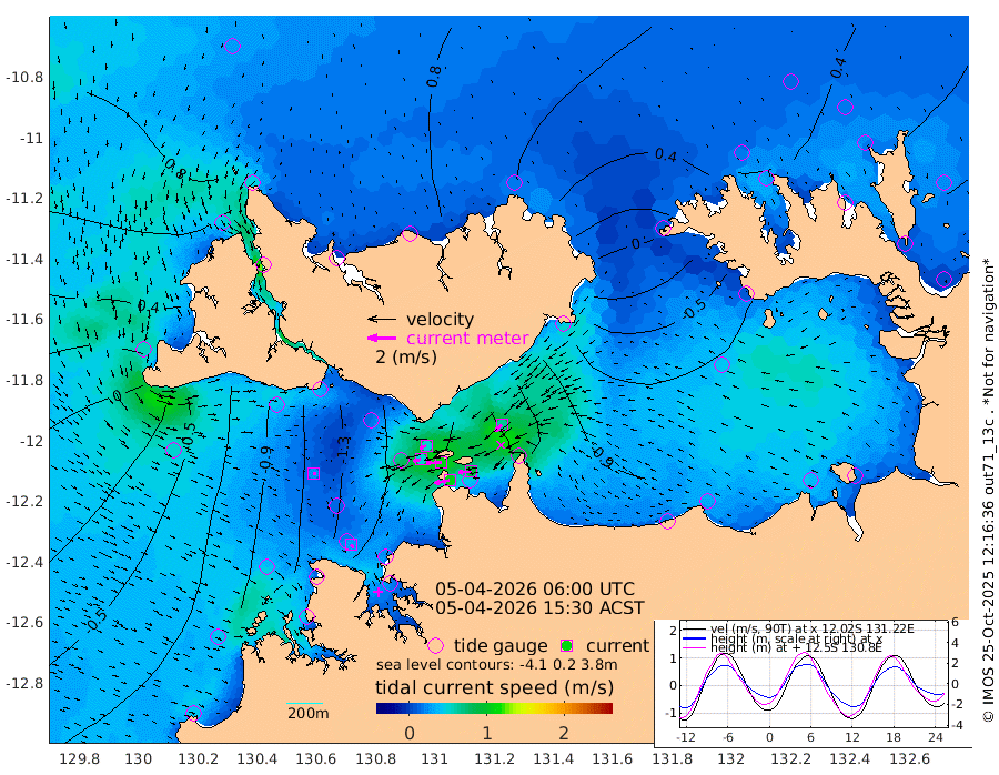 108cm/s -100T +4cm/s rms + 6cm/s 51T. Darwin_C1 52m 91cm/s -92T +4cm/s rms + 7cm/s -161T. Darwin_CW1 22m 52cm/s -106T +4cm/s rms + 8cm/s 61T. Darwin_CW2 34m 66cm/s -135T +3cm/s rms + 9cm/s 98T. Darwin_CW3 22m 109cm/s -91T +5cm/s rms + 7cm/s 88T. Darwin_C3 56m 49cm/s -116T +2cm/s rms + 9cm/s -126T. Darwin_CTbW 22m 23cm/s 108T +1cm/s rms + 1cm/s -47T. DARBGF 30m 30cm/s 141T +4cm/s rms + 3cm/s 80T. NRSDAR 19m 85cm Goodrich Bank -40cm Point Jenny -37cm Native Point -58cm Fish Reef -66cm Tapa Bay 34cm Point Fawcett (Offshore) -75cm Burge Point -65cm Munkunuwa -6cm Beagle A -96cm Parsons Bank -66cm Fenton Patches -101cm Hancox Shoal Area -90cm Nightcliff -114cm Darwin -81cm Charles Point Patches -102cm Glyde Point -124cm Chambers Bay -137cm Point Stuart -101cm Cape Hotham -103cm Christine Reef -156cm West Alligator Head -161cm East Field Island -98cm Two Hills Bay -83cm Camp Point -68cm Medina Inlet South 44cm South Barlow Point 66cm St. Asaph Bay 85cm Cape Van Dieman 80cm Snake Bay 79cm Cache Point 52cm Point Jahleel (Off) -6cm Cape Don 38cm Port Essington 39cm Smith Point - West 40cm NW Peacock Island 58cm North Of Jones Shoal 18cm Peacock Island 8cm Point David 35cm D'urville Point 1cm Copeland Island 11cm One Tree Point