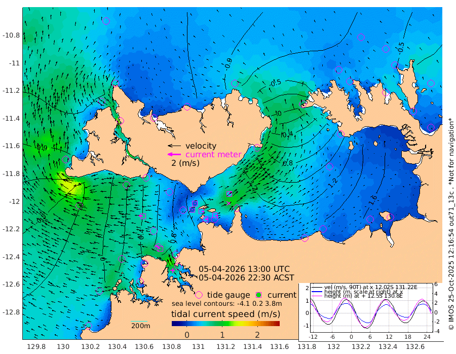 38cm/s 82T +4cm/s rms + 6cm/s 51T. Darwin_C1 52m 37cm/s 90T +4cm/s rms + 7cm/s -161T. Darwin_CW1 22m 8cm/s 53T +4cm/s rms + 8cm/s 61T. Darwin_CW2 34m 45cm/s 44T +3cm/s rms + 9cm/s 98T. Darwin_CW3 22m 38cm/s 93T +5cm/s rms + 7cm/s 88T. Darwin_C3 56m 10cm/s 65T +2cm/s rms + 9cm/s -126T. Darwin_CTbW 22m 65cm/s -84T +1cm/s rms + 1cm/s -47T. DARBGF 30m 81cm/s -54T +4cm/s rms + 3cm/s 80T. NRSDAR 19m -109cm Goodrich Bank -56cm Point Jenny -61cm Native Point -36cm Fish Reef -41cm Tapa Bay -106cm Point Fawcett (Offshore) -19cm Burge Point -48cm Munkunuwa -77cm Beagle A 0cm Parsons Bank -27cm Fenton Patches 10cm Hancox Shoal Area -10cm Nightcliff 17cm Darwin -18cm Charles Point Patches 65cm Glyde Point 136cm Chambers Bay 168cm Point Stuart 86cm Cape Hotham 115cm Christine Reef 192cm West Alligator Head 224cm East Field Island 106cm Two Hills Bay 89cm Camp Point -33cm Medina Inlet South -107cm South Barlow Point -120cm St. Asaph Bay -113cm Cape Van Dieman -107cm Snake Bay -101cm Cache Point -74cm Point Jahleel (Off) -11cm Cape Don -54cm Port Essington -60cm Smith Point - West -53cm NW Peacock Island -71cm North Of Jones Shoal -22cm Peacock Island -11cm Point David -50cm D'urville Point -3cm Copeland Island -13cm One Tree Point