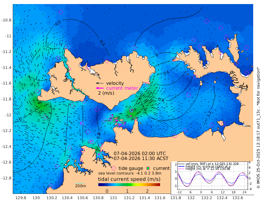 86cm/s 80T +4cm/s rms + 6cm/s 51T. Darwin_C1 52m 80cm/s 91T +4cm/s rms + 7cm/s -161T. Darwin_CW1 22m 33cm/s 69T +4cm/s rms + 8cm/s 61T. Darwin_CW2 34m 55cm/s 48T +3cm/s rms + 9cm/s 98T. Darwin_CW3 22m 72cm/s 91T +5cm/s rms + 7cm/s 88T. Darwin_C3 56m 44cm/s 66T +2cm/s rms + 9cm/s -126T. Darwin_CTbW 22m 33cm/s -79T +1cm/s rms + 1cm/s -47T. DARBGF 30m 51cm/s -52T +4cm/s rms + 3cm/s 80T. NRSDAR 19m -34cm Goodrich Bank 29cm Point Jenny 25cm Native Point 39cm Fish Reef 42cm Tapa Bay -5cm Point Fawcett (Offshore) 44cm Burge Point 22cm Munkunuwa 12cm Beagle A 47cm Parsons Bank 42cm Fenton Patches 64cm Hancox Shoal Area 60cm Nightcliff 70cm Darwin 51cm Charles Point Patches 95cm Glyde Point 147cm Chambers Bay 164cm Point Stuart 107cm Cape Hotham 131cm Christine Reef 187cm West Alligator Head 208cm East Field Island 121cm Two Hills Bay 104cm Camp Point 40cm Medina Inlet South -27cm South Barlow Point -28cm St. Asaph Bay -38cm Cape Van Dieman -36cm Snake Bay -25cm Cache Point -9cm Point Jahleel (Off) 29cm Cape Don -11cm Port Essington -11cm Smith Point - West -12cm NW Peacock Island -15cm North Of Jones Shoal -5cm Peacock Island 0cm Point David -13cm D'urville Point 3cm Copeland Island 4cm One Tree Point
