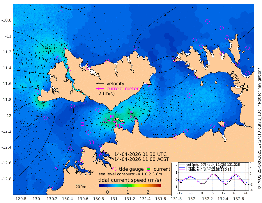 73cm/s -102T +4cm/s rms + 6cm/s 51T. Darwin_C1 52m 63cm/s -91T +4cm/s rms + 7cm/s -161T. Darwin_CW1 22m 50cm/s -106T +4cm/s rms + 8cm/s 61T. Darwin_CW2 34m 47cm/s -139T +3cm/s rms + 9cm/s 98T. Darwin_CW3 22m 78cm/s -90T +5cm/s rms + 7cm/s 88T. Darwin_C3 56m 42cm/s -115T +2cm/s rms + 9cm/s -126T. Darwin_CTbW 22m 8cm/s -117T +1cm/s rms + 1cm/s -47T. DARBGF 30m 6cm/s -112T +4cm/s rms + 3cm/s 80T. NRSDAR 19m 20cm Goodrich Bank -104cm Point Jenny -103cm Native Point -107cm Fish Reef -124cm Tapa Bay -36cm Point Fawcett (Offshore) -128cm Burge Point -102cm Munkunuwa -80cm Beagle A -124cm Parsons Bank -124cm Fenton Patches -134cm Hancox Shoal Area -139cm Nightcliff -148cm Darwin -135cm Charles Point Patches -116cm Glyde Point -113cm Chambers Bay -100cm Point Stuart -99cm Cape Hotham -95cm Christine Reef -107cm West Alligator Head -106cm East Field Island -81cm Two Hills Bay -94cm Camp Point -114cm Medina Inlet South -22cm South Barlow Point -5cm St. Asaph Bay 18cm Cape Van Dieman 16cm Snake Bay 15cm Cache Point 1cm Point Jahleel (Off) -38cm Cape Don -9cm Port Essington -5cm Smith Point - West -5cm NW Peacock Island 7cm North Of Jones Shoal 1cm Peacock Island -29cm Point David -9cm D'urville Point -32cm Copeland Island -24cm One Tree Point