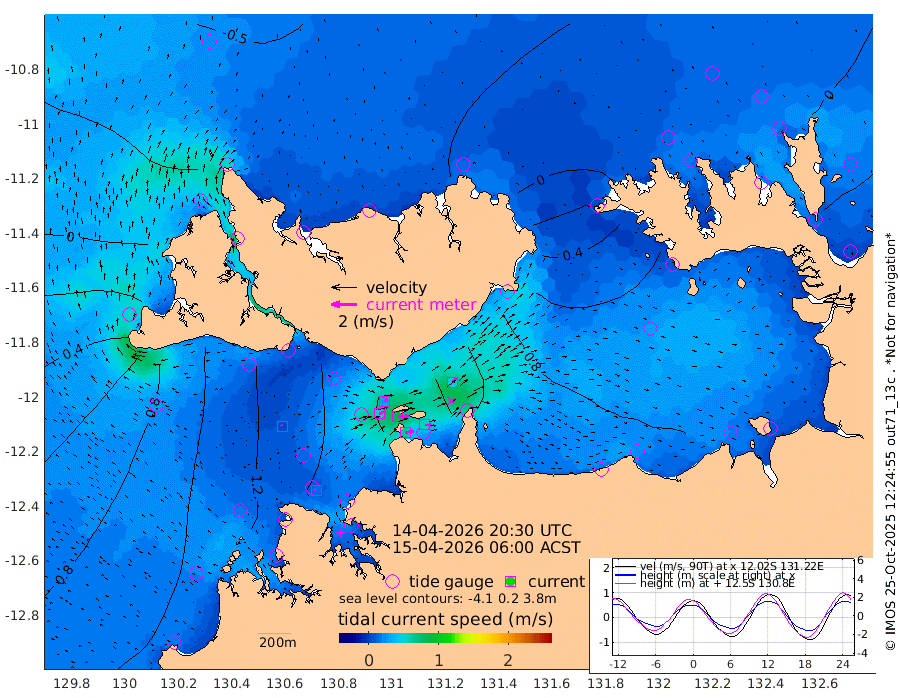 65cm/s 80T +4cm/s rms + 6cm/s 51T. Darwin_C1 52m 55cm/s 93T +4cm/s rms + 7cm/s -161T. Darwin_CW1 22m 56cm/s 71T +4cm/s rms + 8cm/s 61T. Darwin_CW2 34m 48cm/s 40T +3cm/s rms + 9cm/s 98T. Darwin_CW3 22m 86cm/s 89T +5cm/s rms + 7cm/s 88T. Darwin_C3 56m 30cm/s 66T +2cm/s rms + 9cm/s -126T. Darwin_CTbW 22m 6cm/s -25T +1cm/s rms + 1cm/s -47T. DARBGF 30m 12cm/s -39T +4cm/s rms + 3cm/s 80T. NRSDAR 19m -44cm Goodrich Bank 88cm Point Jenny 86cm Native Point 99cm Fish Reef 115cm Tapa Bay 15cm Point Fawcett (Offshore) 121cm Burge Point 95cm Munkunuwa 68cm Beagle A 122cm Parsons Bank 121cm Fenton Patches 136cm Hancox Shoal Area 142cm Nightcliff 147cm Darwin 125cm Charles Point Patches 121cm Glyde Point 126cm Chambers Bay 120cm Point Stuart 113cm Cape Hotham 105cm Christine Reef 132cm West Alligator Head 137cm East Field Island 93cm Two Hills Bay 99cm Camp Point 105cm Medina Inlet South 1cm South Barlow Point -16cm St. Asaph Bay -43cm Cape Van Dieman -38cm Snake Bay -38cm Cache Point -17cm Point Jahleel (Off) 24cm Cape Don -11cm Port Essington -11cm Smith Point - West -12cm NW Peacock Island -24cm North Of Jones Shoal -7cm Peacock Island 16cm Point David -8cm D'urville Point 22cm Copeland Island 10cm One Tree Point