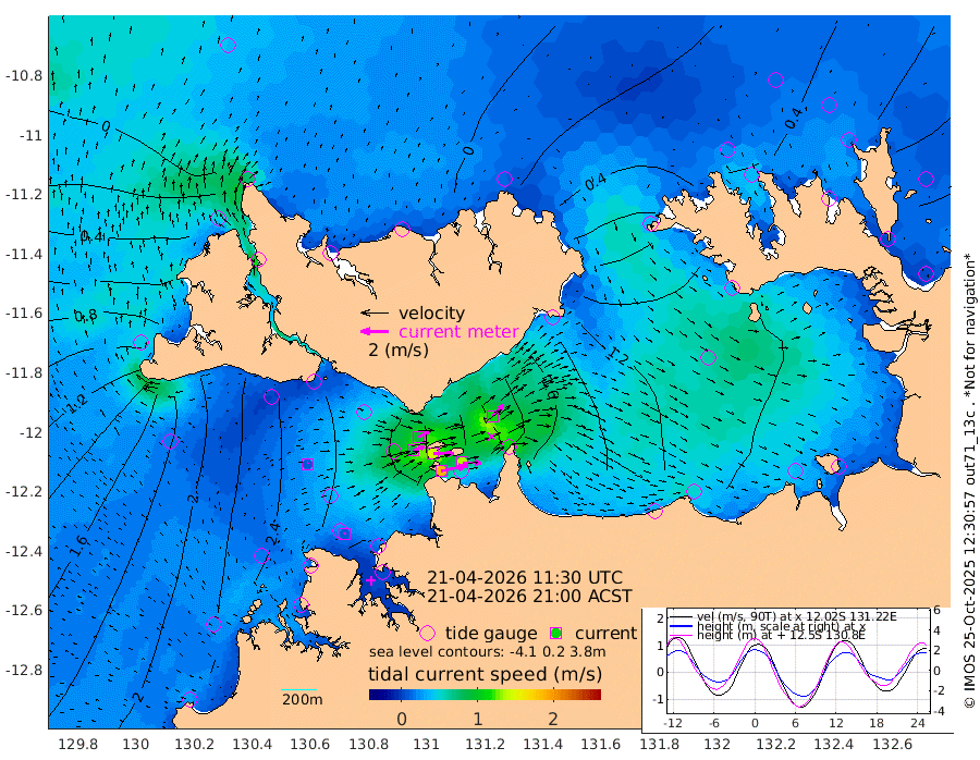 189cm/s 78T +4cm/s rms + 6cm/s 51T. Darwin_C1 52m 134cm/s 91T +4cm/s rms + 7cm/s -161T. Darwin_CW1 22m 88cm/s 74T +4cm/s rms + 8cm/s 61T. Darwin_CW2 34m 112cm/s 43T +3cm/s rms + 9cm/s 98T. Darwin_CW3 22m 147cm/s 89T +5cm/s rms + 7cm/s 88T. Darwin_C3 56m 93cm/s 65T +2cm/s rms + 9cm/s -126T. Darwin_CTbW 22m 9cm/s 45T +1cm/s rms + 1cm/s -47T. DARBGF 30m 10cm/s 31T +4cm/s rms + 3cm/s 80T. NRSDAR 19m -34cm Goodrich Bank 136cm Point Jenny 135cm Native Point 154cm Fish Reef 169cm Tapa Bay 38cm Point Fawcett (Offshore) 188cm Burge Point 158cm Munkunuwa 104cm Beagle A 207cm Parsons Bank 175cm Fenton Patches 200cm Hancox Shoal Area 192cm Nightcliff 224cm Darwin 189cm Charles Point Patches 172cm Glyde Point 139cm Chambers Bay 151cm Point Stuart 154cm Cape Hotham 127cm Christine Reef 160cm West Alligator Head 147cm East Field Island 132cm Two Hills Bay 122cm Camp Point 167cm Medina Inlet South 36cm South Barlow Point -4cm St. Asaph Bay -29cm Cape Van Dieman -15cm Snake Bay -24cm Cache Point 3cm Point Jahleel (Off) 67cm Cape Don 29cm Port Essington 27cm Smith Point - West 31cm NW Peacock Island -3cm North Of Jones Shoal 4cm Peacock Island 80cm Point David 41cm D'urville Point 85cm Copeland Island 69cm One Tree Point