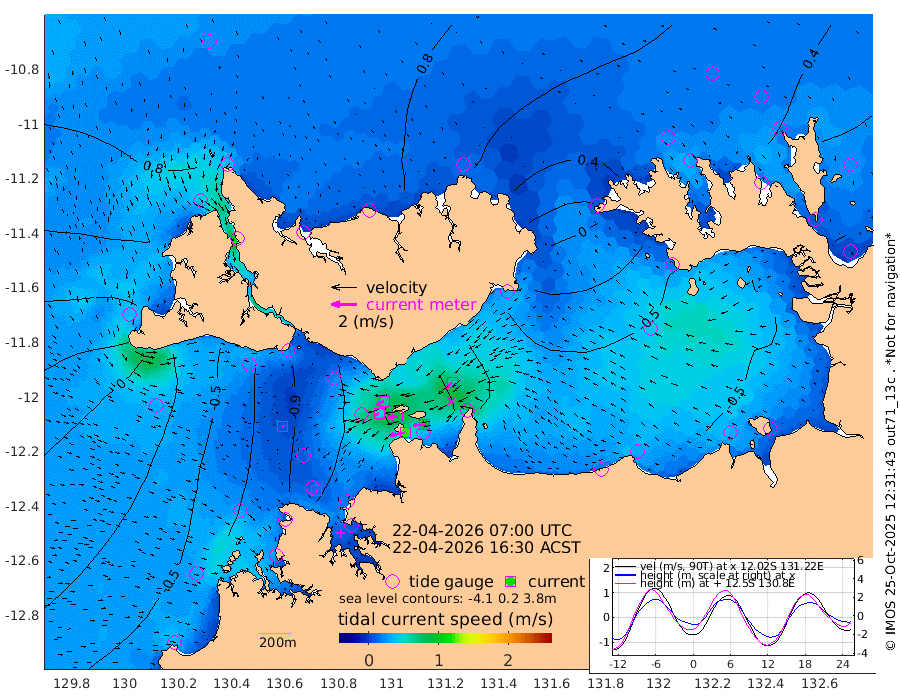 123cm/s -101T +4cm/s rms + 6cm/s 51T. Darwin_C1 52m 86cm/s -91T +4cm/s rms + 7cm/s -161T. Darwin_CW1 22m 48cm/s -107T +4cm/s rms + 8cm/s 61T. Darwin_CW2 34m 64cm/s -135T +3cm/s rms + 9cm/s 98T. Darwin_CW3 22m 82cm/s -90T +5cm/s rms + 7cm/s 88T. Darwin_C3 56m 67cm/s -116T +2cm/s rms + 9cm/s -126T. Darwin_CTbW 22m 12cm/s 113T +1cm/s rms + 1cm/s -47T. DARBGF 30m 16cm/s 154T +4cm/s rms + 3cm/s 80T. NRSDAR 19m 90cm Goodrich Bank -32cm Point Jenny -29cm Native Point -42cm Fish Reef -51cm Tapa Bay 43cm Point Fawcett (Offshore) -62cm Burge Point -57cm Munkunuwa -5cm Beagle A -80cm Parsons Bank -57cm Fenton Patches -81cm Hancox Shoal Area -77cm Nightcliff -81cm Darwin -45cm Charles Point Patches -74cm Glyde Point -90cm Chambers Bay -103cm Point Stuart -76cm Cape Hotham -81cm Christine Reef -119cm West Alligator Head -118cm East Field Island -72cm Two Hills Bay -52cm Camp Point -47cm Medina Inlet South 48cm South Barlow Point 69cm St. Asaph Bay 88cm Cape Van Dieman 84cm Snake Bay 83cm Cache Point 57cm Point Jahleel (Off) 9cm Cape Don 50cm Port Essington 46cm Smith Point - West 47cm NW Peacock Island 68cm North Of Jones Shoal 21cm Peacock Island 17cm Point David 41cm D'urville Point 11cm Copeland Island 25cm One Tree Point