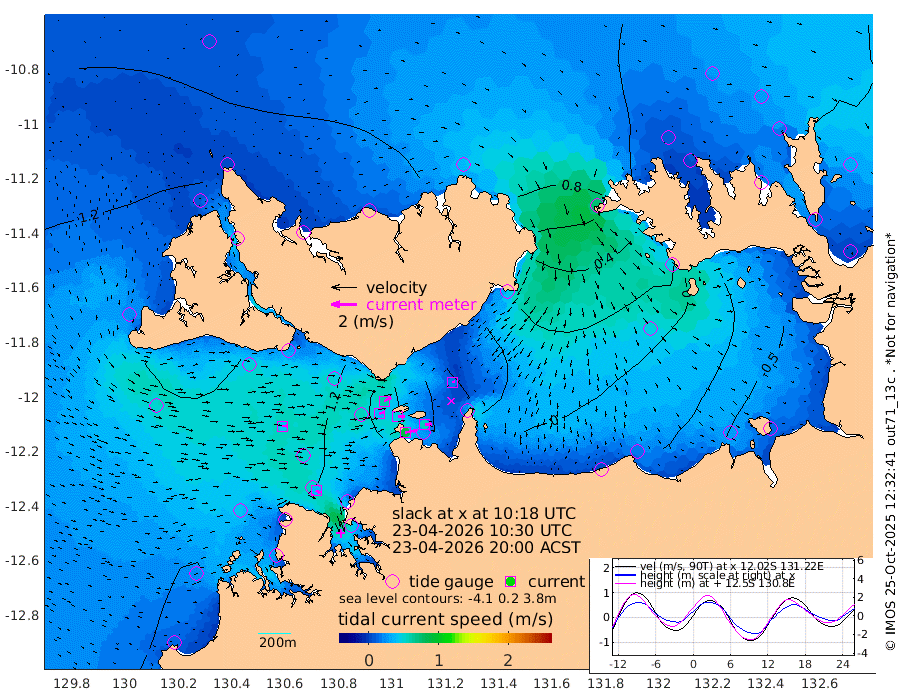 90cm/s 79T +4cm/s rms + 6cm/s 51T. Darwin_C1 52m 57cm/s 84T +4cm/s rms + 7cm/s -161T. Darwin_CW1 22m 38cm/s 77T +4cm/s rms + 8cm/s 61T. Darwin_CW2 34m 19cm/s 64T +3cm/s rms + 9cm/s 98T. Darwin_CW3 22m 49cm/s 88T +5cm/s rms + 7cm/s 88T. Darwin_C3 56m 59cm/s 62T +2cm/s rms + 9cm/s -126T. Darwin_CTbW 22m 41cm/s 91T +1cm/s rms + 1cm/s -47T. DARBGF 30m 37cm/s 119T +4cm/s rms + 3cm/s 80T. NRSDAR 19m 74cm Goodrich Bank 97cm Point Jenny 98cm Native Point 104cm Fish Reef 106cm Tapa Bay 100cm Point Fawcett (Offshore) 102cm Burge Point 108cm Munkunuwa 90cm Beagle A 111cm Parsons Bank 91cm Fenton Patches 95cm Hancox Shoal Area 92cm Nightcliff 116cm Darwin 125cm Charles Point Patches 51cm Glyde Point -23cm Chambers Bay -31cm Point Stuart 27cm Cape Hotham -20cm Christine Reef -47cm West Alligator Head -77cm East Field Island 7cm Two Hills Bay 9cm Camp Point 114cm Medina Inlet South 106cm South Barlow Point 89cm St. Asaph Bay 79cm Cape Van Dieman 88cm Snake Bay 75cm Cache Point 68cm Point Jahleel (Off) 65cm Cape Don 85cm Port Essington 81cm Smith Point - West 82cm NW Peacock Island 79cm North Of Jones Shoal 29cm Peacock Island 86cm Point David 86cm D'urville Point 82cm Copeland Island 87cm One Tree Point