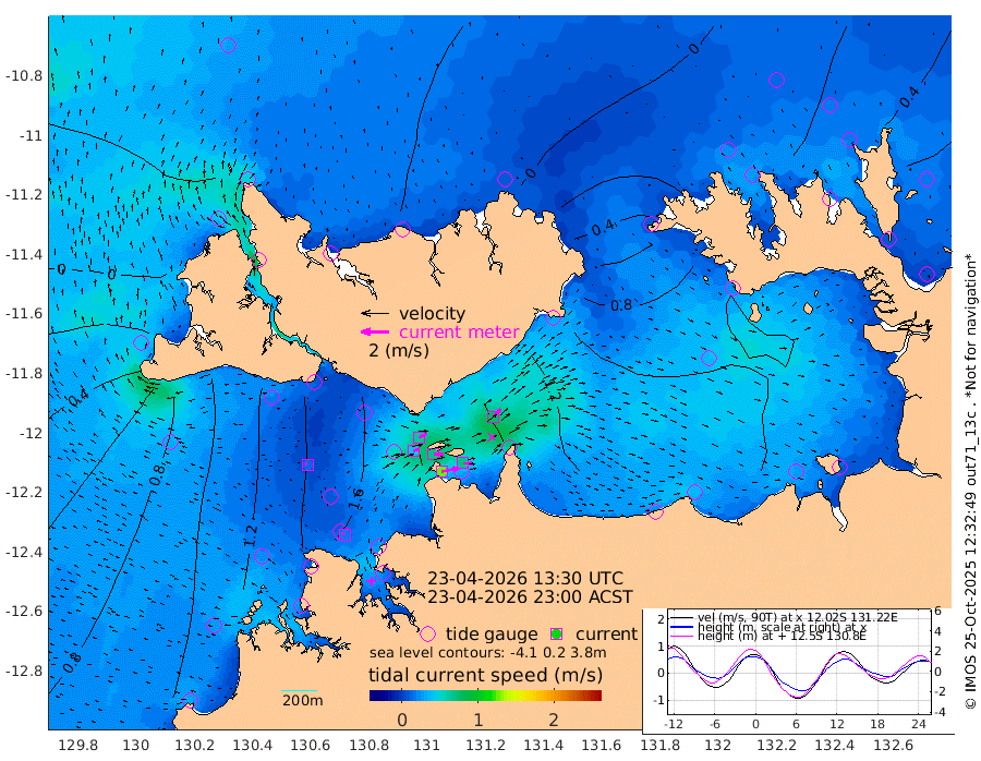126cm/s 78T +4cm/s rms + 6cm/s 51T. Darwin_C1 52m 72cm/s 91T +4cm/s rms + 7cm/s -161T. Darwin_CW1 22m 41cm/s 72T +4cm/s rms + 8cm/s 61T. Darwin_CW2 34m 77cm/s 43T +3cm/s rms + 9cm/s 98T. Darwin_CW3 22m 69cm/s 90T +5cm/s rms + 7cm/s 88T. Darwin_C3 56m 65cm/s 65T +2cm/s rms + 9cm/s -126T. Darwin_CTbW 22m 13cm/s -74T +1cm/s rms + 1cm/s -47T. DARBGF 30m 20cm/s -42T +4cm/s rms + 3cm/s 80T. NRSDAR 19m -46cm Goodrich Bank 51cm Point Jenny 48cm Native Point 63cm Fish Reef 69cm Tapa Bay -8cm Point Fawcett (Offshore) 79cm Burge Point 56cm Munkunuwa 26cm Beagle A 100cm Parsons Bank 71cm Fenton Patches 101cm Hancox Shoal Area 87cm Nightcliff 107cm Darwin 82cm Charles Point Patches 103cm Glyde Point 114cm Chambers Bay 129cm Point Stuart 105cm Cape Hotham 101cm Christine Reef 140cm West Alligator Head 140cm East Field Island 104cm Two Hills Bay 87cm Camp Point 65cm Medina Inlet South -14cm South Barlow Point -36cm St. Asaph Bay -43cm Cape Van Dieman -35cm Snake Bay -34cm Cache Point -12cm Point Jahleel (Off) 41cm Cape Don 12cm Port Essington 12cm Smith Point - West 17cm NW Peacock Island -10cm North Of Jones Shoal 1cm Peacock Island 62cm Point David 25cm D'urville Point 68cm Copeland Island 53cm One Tree Point