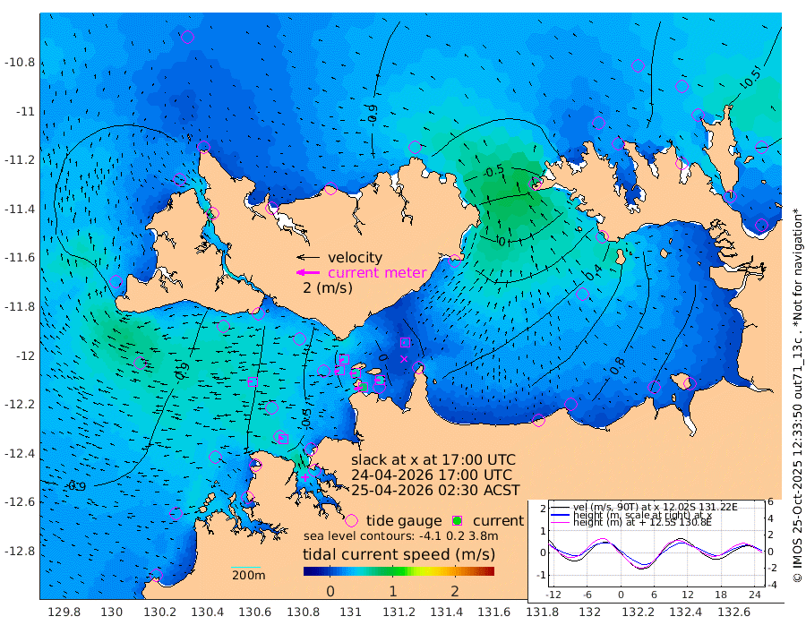75cm/s -103T +4cm/s rms + 6cm/s 51T. Darwin_C1 52m 49cm/s -87T +4cm/s rms + 7cm/s -161T. Darwin_CW1 22m 44cm/s -108T +4cm/s rms + 8cm/s 61T. Darwin_CW2 34m 17cm/s -99T +3cm/s rms + 9cm/s 98T. Darwin_CW3 22m 57cm/s -92T +5cm/s rms + 7cm/s 88T. Darwin_C3 56m 42cm/s -115T +2cm/s rms + 9cm/s -126T. Darwin_CTbW 22m 43cm/s -90T +1cm/s rms + 1cm/s -47T. DARBGF 30m 39cm/s -60T +4cm/s rms + 3cm/s 80T. NRSDAR 19m -87cm Goodrich Bank -79cm Point Jenny -82cm Native Point -79cm Fish Reef -79cm Tapa Bay -104cm Point Fawcett (Offshore) -71cm Burge Point -94cm Munkunuwa -81cm Beagle A -67cm Parsons Bank -63cm Fenton Patches -51cm Hancox Shoal Area -63cm Nightcliff -70cm Darwin -84cm Charles Point Patches -10cm Glyde Point 61cm Chambers Bay 73cm Point Stuart 15cm Cape Hotham 48cm Christine Reef 86cm West Alligator Head 115cm East Field Island 30cm Two Hills Bay 26cm Camp Point -91cm Medina Inlet South -107cm South Barlow Point -103cm St. Asaph Bay -90cm Cape Van Dieman -95cm Snake Bay -81cm Cache Point -67cm Point Jahleel (Off) -40cm Cape Don -60cm Port Essington -60cm Smith Point - West -53cm NW Peacock Island -69cm North Of Jones Shoal -22cm Peacock Island -24cm Point David -52cm D'urville Point -16cm Copeland Island -33cm One Tree Point