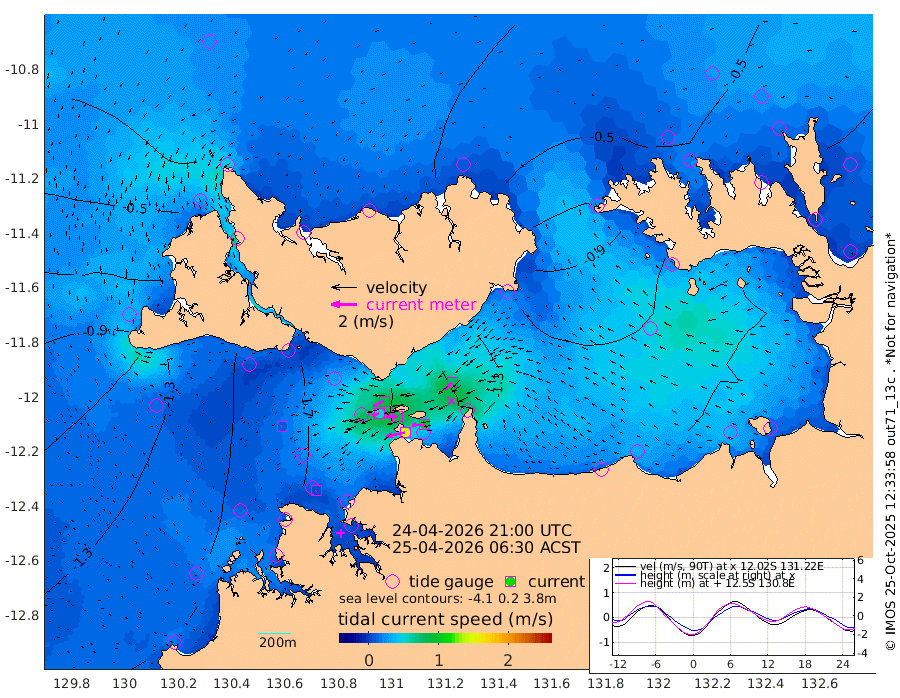 151cm/s -101T +4cm/s rms + 6cm/s 51T. Darwin_C1 52m 100cm/s -91T +4cm/s rms + 7cm/s -161T. Darwin_CW1 22m 52cm/s -105T +4cm/s rms + 8cm/s 61T. Darwin_CW2 34m 80cm/s -134T +3cm/s rms + 9cm/s 98T. Darwin_CW3 22m 87cm/s -90T +5cm/s rms + 7cm/s 88T. Darwin_C3 56m 90cm/s -115T +2cm/s rms + 9cm/s -126T. Darwin_CTbW 22m 8cm/s -120T +1cm/s rms + 1cm/s -47T. DARBGF 30m 5cm/s -159T +4cm/s rms + 3cm/s 80T. NRSDAR 19m -11cm Goodrich Bank -122cm Point Jenny -119cm Native Point -127cm Fish Reef -134cm Tapa Bay -70cm Point Fawcett (Offshore) -143cm Burge Point -114cm Munkunuwa -97cm Beagle A -142cm Parsons Bank -130cm Fenton Patches -142cm Hancox Shoal Area -142cm Nightcliff -157cm Darwin -142cm Charles Point Patches -137cm Glyde Point -137cm Chambers Bay -142cm Point Stuart -129cm Cape Hotham -126cm Christine Reef -151cm West Alligator Head -147cm East Field Island -125cm Two Hills Bay -114cm Camp Point -129cm Medina Inlet South -49cm South Barlow Point -33cm St. Asaph Bay -14cm Cape Van Dieman -19cm Snake Bay -24cm Cache Point -35cm Point Jahleel (Off) -79cm Cape Don -46cm Port Essington -44cm Smith Point - West -44cm NW Peacock Island -33cm North Of Jones Shoal -13cm Peacock Island -66cm Point David -48cm D'urville Point -67cm Copeland Island -66cm One Tree Point