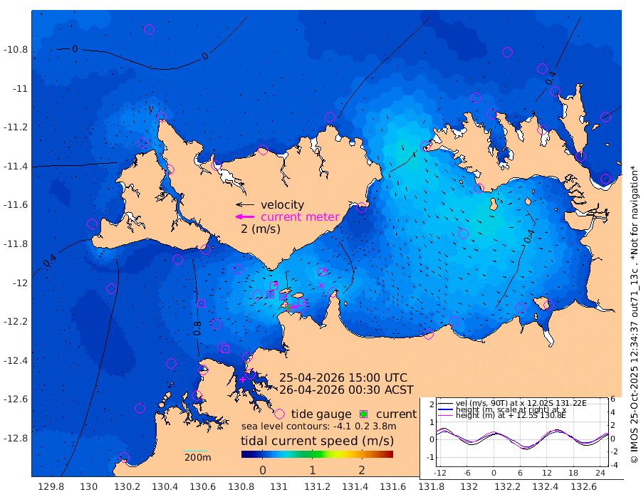 87cm/s 79T +4cm/s rms + 6cm/s 51T. Darwin_C1 52m 35cm/s 89T +4cm/s rms + 7cm/s -161T. Darwin_CW1 22m 24cm/s 73T +4cm/s rms + 8cm/s 61T. Darwin_CW2 34m 43cm/s 46T +3cm/s rms + 9cm/s 98T. Darwin_CW3 22m 28cm/s 89T +5cm/s rms + 7cm/s 88T. Darwin_C3 56m 51cm/s 64T +2cm/s rms + 9cm/s -126T. Darwin_CTbW 22m 11cm/s 90T +1cm/s rms + 1cm/s -47T. DARBGF 30m 8cm/s 108T +4cm/s rms + 3cm/s 80T. NRSDAR 19m -10cm Goodrich Bank 45cm Point Jenny 41cm Native Point 51cm Fish Reef 50cm Tapa Bay 23cm Point Fawcett (Offshore) 48cm Burge Point 41cm Munkunuwa 29cm Beagle A 63cm Parsons Bank 43cm Fenton Patches 61cm Hancox Shoal Area 53cm Nightcliff 60cm Darwin 53cm Charles Point Patches 52cm Glyde Point 54cm Chambers Bay 56cm Point Stuart 55cm Cape Hotham 42cm Christine Reef 58cm West Alligator Head 48cm East Field Island 54cm Two Hills Bay 36cm Camp Point 47cm Medina Inlet South 12cm South Barlow Point 1cm St. Asaph Bay -5cm Cape Van Dieman -2cm Snake Bay 2cm Cache Point 10cm Point Jahleel (Off) 38cm Cape Don 28cm Port Essington 29cm Smith Point - West 31cm NW Peacock Island 18cm North Of Jones Shoal 9cm Peacock Island 57cm Point David 38cm D'urville Point 60cm Copeland Island 53cm One Tree Point
