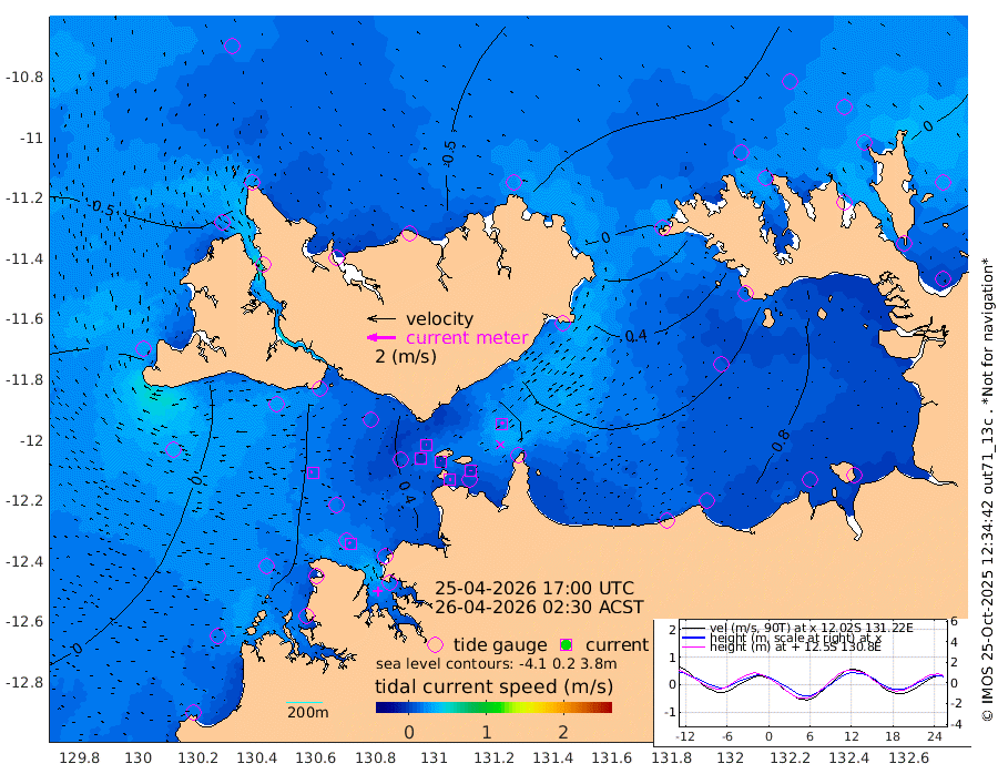 7cm/s 84T +4cm/s rms + 6cm/s 51T. Darwin_C1 52m 2cm/s 6T +4cm/s rms + 7cm/s -161T. Darwin_CW1 22m 1cm/s 55T +4cm/s rms + 8cm/s 61T. Darwin_CW2 34m 18cm/s 28T +3cm/s rms + 9cm/s 98T. Darwin_CW3 22m 1cm/s -118T +5cm/s rms + 7cm/s 88T. Darwin_C3 56m 5cm/s 62T +2cm/s rms + 9cm/s -126T. Darwin_CTbW 22m 14cm/s -86T +1cm/s rms + 1cm/s -47T. DARBGF 30m 15cm/s -54T +4cm/s rms + 3cm/s 80T. NRSDAR 19m -56cm Goodrich Bank 11cm Point Jenny 6cm Native Point 16cm Fish Reef 15cm Tapa Bay -32cm Point Fawcett (Offshore) 24cm Burge Point 0cm Munkunuwa 0cm Beagle A 27cm Parsons Bank 26cm Fenton Patches 35cm Hancox Shoal Area 29cm Nightcliff 28cm Darwin 14cm Charles Point Patches 49cm Glyde Point 85cm Chambers Bay 91cm Point Stuart 60cm Cape Hotham 70cm Christine Reef 101cm West Alligator Head 112cm East Field Island 61cm Two Hills Bay 53cm Camp Point 5cm Medina Inlet South -44cm South Barlow Point -50cm St. Asaph Bay -54cm Cape Van Dieman -57cm Snake Bay -45cm Cache Point -31cm Point Jahleel (Off) 5cm Cape Don -19cm Port Essington -18cm Smith Point - West -15cm NW Peacock Island -32cm North Of Jones Shoal -8cm Peacock Island 14cm Point David -11cm D'urville Point 21cm Copeland Island 7cm One Tree Point