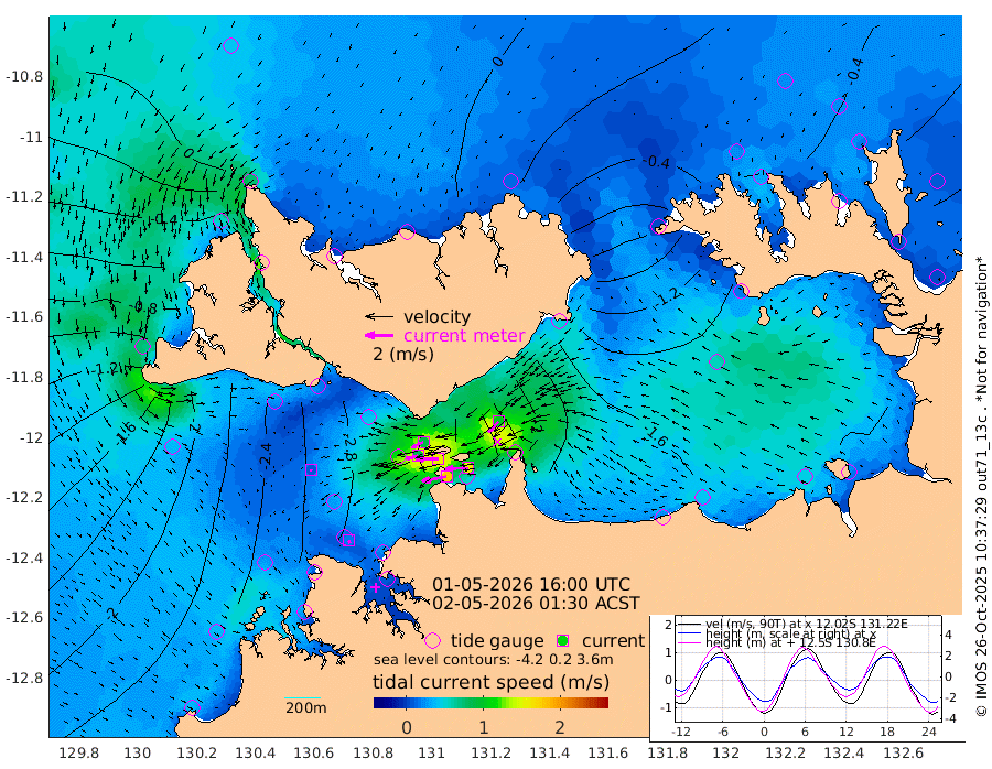 179cm/s -101T +4cm/s rms + 6cm/s 51T. Darwin_C1 52m 158cm/s -92T +4cm/s rms + 7cm/s -161T. Darwin_CW1 22m 84cm/s -105T +4cm/s rms + 8cm/s 61T. Darwin_CW2 34m 103cm/s -136T +3cm/s rms + 9cm/s 98T. Darwin_CW3 22m 158cm/s -90T +5cm/s rms + 7cm/s 88T. Darwin_C3 56m 90cm/s -116T +2cm/s rms + 9cm/s -126T. Darwin_CTbW 22m 11cm/s 155T +1cm/s rms + 1cm/s -47T. DARBGF 30m 21cm/s 150T +4cm/s rms + 3cm/s 80T. NRSDAR 19m 15cm Goodrich Bank -178cm Point Jenny -175cm Native Point -207cm Fish Reef -209cm Tapa Bay -79cm Point Fawcett (Offshore) -244cm Burge Point -189cm Munkunuwa -153cm Beagle A -237cm Parsons Bank -228cm Fenton Patches -237cm Hancox Shoal Area -243cm Nightcliff -277cm Darwin -241cm Charles Point Patches -229cm Glyde Point -212cm Chambers Bay -227cm Point Stuart -213cm Cape Hotham -195cm Christine Reef -245cm West Alligator Head -249cm East Field Island -191cm Two Hills Bay -184cm Camp Point -215cm Medina Inlet South -59cm South Barlow Point -25cm St. Asaph Bay 14cm Cape Van Dieman 2cm Snake Bay 2cm Cache Point -25cm Point Jahleel (Off) -94cm Cape Don -38cm Port Essington -33cm Smith Point - West -33cm NW Peacock Island -16cm North Of Jones Shoal -8cm Peacock Island -63cm Point David -38cm D'urville Point -67cm Copeland Island -66cm One Tree Point