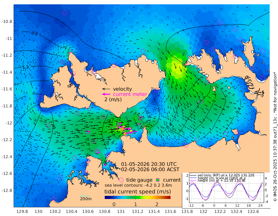 184cm/s 78T +4cm/s rms + 6cm/s 51T. Darwin_C1 52m 148cm/s 91T +4cm/s rms + 7cm/s -161T. Darwin_CW1 22m 125cm/s 74T +4cm/s rms + 8cm/s 61T. Darwin_CW2 34m 84cm/s 47T +3cm/s rms + 9cm/s 98T. Darwin_CW3 22m 188cm/s 89T +5cm/s rms + 7cm/s 88T. Darwin_C3 56m 93cm/s 66T +2cm/s rms + 9cm/s -126T. Darwin_CTbW 22m 70cm/s 86T +1cm/s rms + 1cm/s -47T. DARBGF 30m 66cm/s 114T +4cm/s rms + 3cm/s 80T. NRSDAR 19m 34cm Goodrich Bank 225cm Point Jenny 224cm Native Point 240cm Fish Reef 252cm Tapa Bay 153cm Point Fawcett (Offshore) 251cm Burge Point 249cm Munkunuwa 198cm Beagle A 247cm Parsons Bank 241cm Fenton Patches 238cm Hancox Shoal Area 259cm Nightcliff 266cm Darwin 255cm Charles Point Patches 160cm Glyde Point 81cm Chambers Bay 59cm Point Stuart 122cm Cape Hotham 68cm Christine Reef 57cm West Alligator Head 18cm East Field Island 79cm Two Hills Bay 76cm Camp Point 248cm Medina Inlet South 127cm South Barlow Point 100cm St. Asaph Bay 42cm Cape Van Dieman 48cm Snake Bay 42cm Cache Point 52cm Point Jahleel (Off) 77cm Cape Don 53cm Port Essington 57cm Smith Point - West 45cm NW Peacock Island 42cm North Of Jones Shoal 15cm Peacock Island 49cm Point David 53cm D'urville Point 49cm Copeland Island 50cm One Tree Point