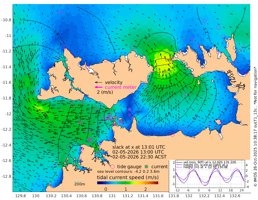 109cm/s -102T +4cm/s rms + 6cm/s 51T. Darwin_C1 52m 76cm/s -88T +4cm/s rms + 7cm/s -161T. Darwin_CW1 22m 90cm/s -108T +4cm/s rms + 8cm/s 61T. Darwin_CW2 34m 25cm/s -110T +3cm/s rms + 9cm/s 98T. Darwin_CW3 22m 103cm/s -93T +5cm/s rms + 7cm/s 88T. Darwin_C3 56m 72cm/s -116T +2cm/s rms + 9cm/s -126T. Darwin_CTbW 22m 87cm/s -90T +1cm/s rms + 1cm/s -47T. DARBGF 30m 81cm/s -57T +4cm/s rms + 3cm/s 80T. NRSDAR 19m -122cm Goodrich Bank -203cm Point Jenny -206cm Native Point -200cm Fish Reef -207cm Tapa Bay -194cm Point Fawcett (Offshore) -196cm Burge Point -204cm Munkunuwa -205cm Beagle A -179cm Parsons Bank -197cm Fenton Patches -165cm Hancox Shoal Area -197cm Nightcliff -184cm Darwin -201cm Charles Point Patches -81cm Glyde Point 23cm Chambers Bay 59cm Point Stuart -40cm Cape Hotham 16cm Christine Reef 78cm West Alligator Head 125cm East Field Island 0cm Two Hills Bay -10cm Camp Point -204cm Medina Inlet South -182cm South Barlow Point -170cm St. Asaph Bay -130cm Cape Van Dieman -135cm Snake Bay -124cm Cache Point -110cm Point Jahleel (Off) -86cm Cape Don -100cm Port Essington -106cm Smith Point - West -96cm NW Peacock Island -107cm North Of Jones Shoal -36cm Peacock Island -70cm Point David -100cm D'urville Point -63cm Copeland Island -75cm One Tree Point