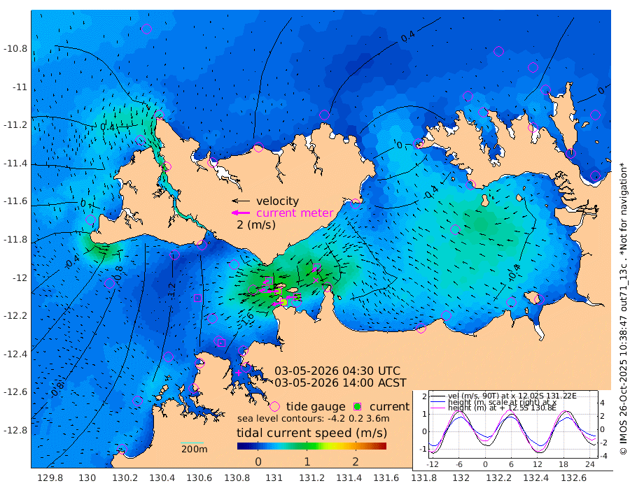136cm/s -101T +4cm/s rms + 6cm/s 51T. Darwin_C1 52m 120cm/s -91T +4cm/s rms + 7cm/s -161T. Darwin_CW1 22m 70cm/s -106T +4cm/s rms + 8cm/s 61T. Darwin_CW2 34m 68cm/s -134T +3cm/s rms + 9cm/s 98T. Darwin_CW3 22m 124cm/s -91T +5cm/s rms + 7cm/s 88T. Darwin_C3 56m 68cm/s -116T +2cm/s rms + 9cm/s -126T. Darwin_CTbW 22m 7cm/s -141T +1cm/s rms + 1cm/s -47T. DARBGF 30m 9cm/s -155T +4cm/s rms + 3cm/s 80T. NRSDAR 19m 70cm Goodrich Bank -75cm Point Jenny -72cm Native Point -93cm Fish Reef -102cm Tapa Bay 3cm Point Fawcett (Offshore) -110cm Burge Point -105cm Munkunuwa -43cm Beagle A -126cm Parsons Bank -101cm Fenton Patches -126cm Hancox Shoal Area -123cm Nightcliff -142cm Darwin -113cm Charles Point Patches -104cm Glyde Point -95cm Chambers Bay -99cm Point Stuart -91cm Cape Hotham -78cm Christine Reef -111cm West Alligator Head -103cm East Field Island -75cm Two Hills Bay -65cm Camp Point -103cm Medina Inlet South 13cm South Barlow Point 38cm St. Asaph Bay 68cm Cape Van Dieman 63cm Snake Bay 65cm Cache Point 41cm Point Jahleel (Off) -9cm Cape Don 27cm Port Essington 28cm Smith Point - West 31cm NW Peacock Island 48cm North Of Jones Shoal 14cm Peacock Island 5cm Point David 24cm D'urville Point -1cm Copeland Island 8cm One Tree Point