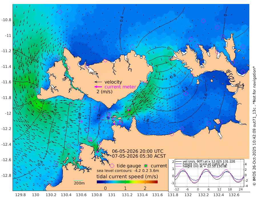 64cm/s -100T +4cm/s rms + 6cm/s 51T. Darwin_C1 52m 63cm/s -94T +4cm/s rms + 7cm/s -161T. Darwin_CW1 22m 3cm/s -78T +4cm/s rms + 8cm/s 61T. Darwin_CW2 34m 66cm/s -140T +3cm/s rms + 9cm/s 98T. Darwin_CW3 22m 44cm/s -88T +5cm/s rms + 7cm/s 88T. Darwin_C3 56m 28cm/s -116T +2cm/s rms + 9cm/s -126T. Darwin_CTbW 22m 50cm/s 96T +1cm/s rms + 1cm/s -47T. DARBGF 30m 58cm/s 127T +4cm/s rms + 3cm/s 80T. NRSDAR 19m 43cm Goodrich Bank -2cm Point Jenny 1cm Native Point -13cm Fish Reef -20cm Tapa Bay 30cm Point Fawcett (Offshore) -24cm Burge Point 9cm Munkunuwa 17cm Beagle A -34cm Parsons Bank -19cm Fenton Patches -52cm Hancox Shoal Area -41cm Nightcliff -61cm Darwin -39cm Charles Point Patches -98cm Glyde Point -159cm Chambers Bay -180cm Point Stuart -115cm Cape Hotham -135cm Christine Reef -201cm West Alligator Head -229cm East Field Island -131cm Two Hills Bay -121cm Camp Point -18cm Medina Inlet South 44cm South Barlow Point 50cm St. Asaph Bay 46cm Cape Van Dieman 37cm Snake Bay 34cm Cache Point 14cm Point Jahleel (Off) -34cm Cape Don 3cm Port Essington 9cm Smith Point - West 2cm NW Peacock Island 11cm North Of Jones Shoal 2cm Peacock Island -35cm Point David 2cm D'urville Point -38cm Copeland Island -33cm One Tree Point
