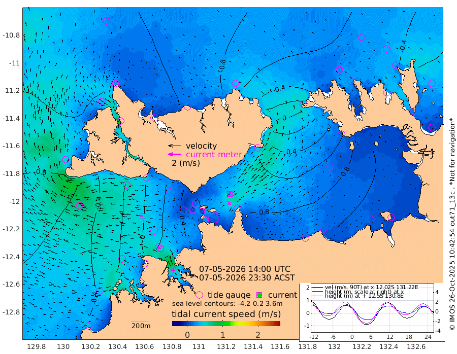 28cm/s 83T +4cm/s rms + 6cm/s 51T. Darwin_C1 52m 15cm/s 88T +4cm/s rms + 7cm/s -161T. Darwin_CW1 22m 5cm/s -67T +4cm/s rms + 8cm/s 61T. Darwin_CW2 34m 34cm/s 41T +3cm/s rms + 9cm/s 98T. Darwin_CW3 22m 3cm/s 108T +5cm/s rms + 7cm/s 88T. Darwin_C3 56m 13cm/s 65T +2cm/s rms + 9cm/s -126T. Darwin_CTbW 22m 45cm/s -87T +1cm/s rms + 1cm/s -47T. DARBGF 30m 54cm/s -55T +4cm/s rms + 3cm/s 80T. NRSDAR 19m -95cm Goodrich Bank -75cm Point Jenny -79cm Native Point -66cm Fish Reef -62cm Tapa Bay -98cm Point Fawcett (Offshore) -63cm Burge Point -71cm Munkunuwa -93cm Beagle A -38cm Parsons Bank -64cm Fenton Patches -23cm Hancox Shoal Area -34cm Nightcliff -31cm Darwin -56cm Charles Point Patches 14cm Glyde Point 81cm Chambers Bay 98cm Point Stuart 40cm Cape Hotham 58cm Christine Reef 114cm West Alligator Head 135cm East Field Island 57cm Two Hills Bay 41cm Camp Point -63cm Medina Inlet South -100cm South Barlow Point -105cm St. Asaph Bay -96cm Cape Van Dieman -89cm Snake Bay -88cm Cache Point -66cm Point Jahleel (Off) -24cm Cape Don -51cm Port Essington -53cm Smith Point - West -45cm NW Peacock Island -55cm North Of Jones Shoal -16cm Peacock Island -2cm Point David -43cm D'urville Point 5cm Copeland Island -8cm One Tree Point