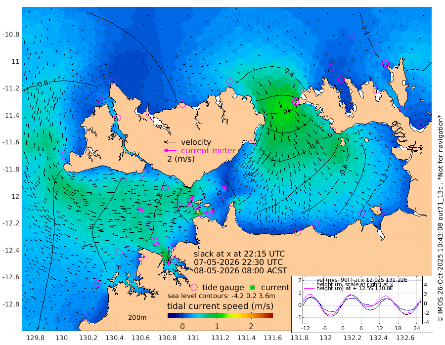 115cm/s 78T +4cm/s rms + 6cm/s 51T. Darwin_C1 52m 67cm/s 88T +4cm/s rms + 7cm/s -161T. Darwin_CW1 22m 60cm/s 73T +4cm/s rms + 8cm/s 61T. Darwin_CW2 34m 27cm/s 69T +3cm/s rms + 9cm/s 98T. Darwin_CW3 22m 64cm/s 88T +5cm/s rms + 7cm/s 88T. Darwin_C3 56m 73cm/s 63T +2cm/s rms + 9cm/s -126T. Darwin_CTbW 22m 54cm/s 89T +1cm/s rms + 1cm/s -47T. DARBGF 30m 53cm/s 118T +4cm/s rms + 3cm/s 80T. NRSDAR 19m 48cm Goodrich Bank 118cm Point Jenny 120cm Native Point 113cm Fish Reef 119cm Tapa Bay 90cm Point Fawcett (Offshore) 124cm Burge Point 136cm Munkunuwa 116cm Beagle A 118cm Parsons Bank 122cm Fenton Patches 101cm Hancox Shoal Area 119cm Nightcliff 110cm Darwin 112cm Charles Point Patches 33cm Glyde Point -45cm Chambers Bay -66cm Point Stuart 1cm Cape Hotham -23cm Christine Reef -77cm West Alligator Head -112cm East Field Island -26cm Two Hills Bay -22cm Camp Point 121cm Medina Inlet South 97cm South Barlow Point 81cm St. Asaph Bay 52cm Cape Van Dieman 52cm Snake Bay 44cm Cache Point 40cm Point Jahleel (Off) 27cm Cape Don 33cm Port Essington 41cm Smith Point - West 32cm NW Peacock Island 31cm North Of Jones Shoal 10cm Peacock Island 7cm Point David 36cm D'urville Point 5cm Copeland Island 10cm One Tree Point