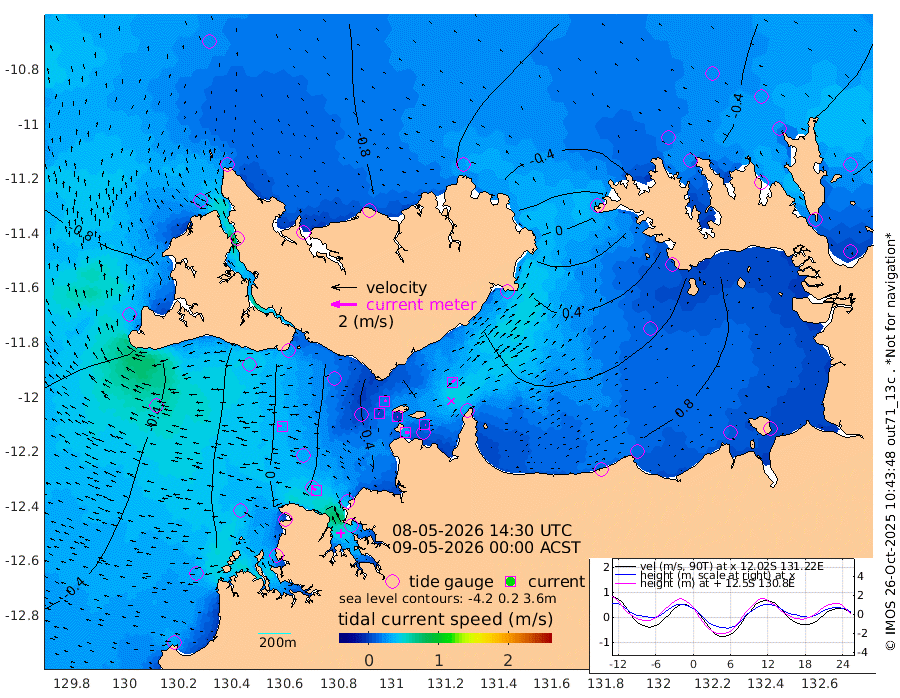 30cm/s 81T +4cm/s rms + 6cm/s 51T. Darwin_C1 52m 6cm/s 85T +4cm/s rms + 7cm/s -161T. Darwin_CW1 22m 4cm/s -60T +4cm/s rms + 8cm/s 61T. Darwin_CW2 34m 32cm/s 41T +3cm/s rms + 9cm/s 98T. Darwin_CW3 22m 2cm/s -112T +5cm/s rms + 7cm/s 88T. Darwin_C3 56m 17cm/s 65T +2cm/s rms + 9cm/s -126T. Darwin_CTbW 22m 34cm/s -87T +1cm/s rms + 1cm/s -47T. DARBGF 30m 41cm/s -55T +4cm/s rms + 3cm/s 80T. NRSDAR 19m -80cm Goodrich Bank -57cm Point Jenny -60cm Native Point -53cm Fish Reef -45cm Tapa Bay -80cm Point Fawcett (Offshore) -51cm Burge Point -57cm Munkunuwa -74cm Beagle A -28cm Parsons Bank -49cm Fenton Patches -12cm Hancox Shoal Area -20cm Nightcliff -24cm Darwin -44cm Charles Point Patches 14cm Glyde Point 71cm Chambers Bay 81cm Point Stuart 35cm Cape Hotham 50cm Christine Reef 94cm West Alligator Head 110cm East Field Island 48cm Two Hills Bay 35cm Camp Point -50cm Medina Inlet South -83cm South Barlow Point -87cm St. Asaph Bay -80cm Cape Van Dieman -75cm Snake Bay -73cm Cache Point -54cm Point Jahleel (Off) -19cm Cape Don -42cm Port Essington -42cm Smith Point - West -35cm NW Peacock Island -46cm North Of Jones Shoal -13cm Peacock Island 5cm Point David -32cm D'urville Point 12cm Copeland Island -3cm One Tree Point