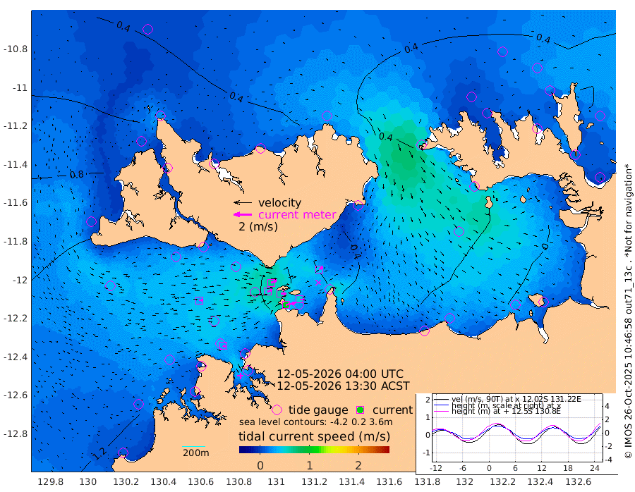 103cm/s 78T +4cm/s rms + 6cm/s 51T. Darwin_C1 52m 51cm/s 90T +4cm/s rms + 7cm/s -161T. Darwin_CW1 22m 52cm/s 73T +4cm/s rms + 8cm/s 61T. Darwin_CW2 34m 42cm/s 53T +3cm/s rms + 9cm/s 98T. Darwin_CW3 22m 61cm/s 89T +5cm/s rms + 7cm/s 88T. Darwin_C3 56m 66cm/s 64T +2cm/s rms + 9cm/s -126T. Darwin_CTbW 22m 34cm/s 88T +1cm/s rms + 1cm/s -47T. DARBGF 30m 31cm/s 116T +4cm/s rms + 3cm/s 80T. NRSDAR 19m 31cm Goodrich Bank 120cm Point Jenny 121cm Native Point 117cm Fish Reef 122cm Tapa Bay 79cm Point Fawcett (Offshore) 132cm Burge Point 118cm Munkunuwa 116cm Beagle A 120cm Parsons Bank 131cm Fenton Patches 111cm Hancox Shoal Area 133cm Nightcliff 122cm Darwin 113cm Charles Point Patches 79cm Glyde Point 43cm Chambers Bay 30cm Point Stuart 58cm Cape Hotham 49cm Christine Reef 29cm West Alligator Head 12cm East Field Island 42cm Two Hills Bay 43cm Camp Point 119cm Medina Inlet South 74cm South Barlow Point 58cm St. Asaph Bay 35cm Cape Van Dieman 38cm Snake Bay 34cm Cache Point 37cm Point Jahleel (Off) 49cm Cape Don 33cm Port Essington 38cm Smith Point - West 33cm NW Peacock Island 28cm North Of Jones Shoal 10cm Peacock Island 28cm Point David 36cm D'urville Point 26cm Copeland Island 29cm One Tree Point