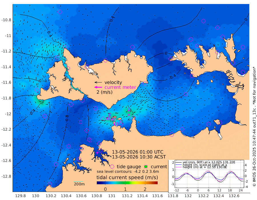 54cm/s -103T +4cm/s rms + 6cm/s 51T. Darwin_C1 52m 43cm/s -90T +4cm/s rms + 7cm/s -161T. Darwin_CW1 22m 38cm/s -106T +4cm/s rms + 8cm/s 61T. Darwin_CW2 34m 37cm/s -138T +3cm/s rms + 9cm/s 98T. Darwin_CW3 22m 60cm/s -90T +5cm/s rms + 7cm/s 88T. Darwin_C3 56m 30cm/s -115T +2cm/s rms + 9cm/s -126T. Darwin_CTbW 22m 4cm/s 153T +1cm/s rms + 1cm/s -47T. DARBGF 30m 7cm/s 161T +4cm/s rms + 3cm/s 80T. NRSDAR 19m 45cm Goodrich Bank -64cm Point Jenny -62cm Native Point -63cm Fish Reef -80cm Tapa Bay 0cm Point Fawcett (Offshore) -84cm Burge Point -63cm Munkunuwa -38cm Beagle A -84cm Parsons Bank -79cm Fenton Patches -95cm Hancox Shoal Area -97cm Nightcliff -101cm Darwin -86cm Charles Point Patches -84cm Glyde Point -94cm Chambers Bay -85cm Point Stuart -73cm Cape Hotham -80cm Christine Reef -93cm West Alligator Head -96cm East Field Island -61cm Two Hills Bay -71cm Camp Point -70cm Medina Inlet South 12cm South Barlow Point 25cm St. Asaph Bay 44cm Cape Van Dieman 44cm Snake Bay 41cm Cache Point 26cm Point Jahleel (Off) -14cm Cape Don 16cm Port Essington 18cm Smith Point - West 18cm NW Peacock Island 29cm North Of Jones Shoal 8cm Peacock Island -6cm Point David 14cm D'urville Point -11cm Copeland Island -2cm One Tree Point