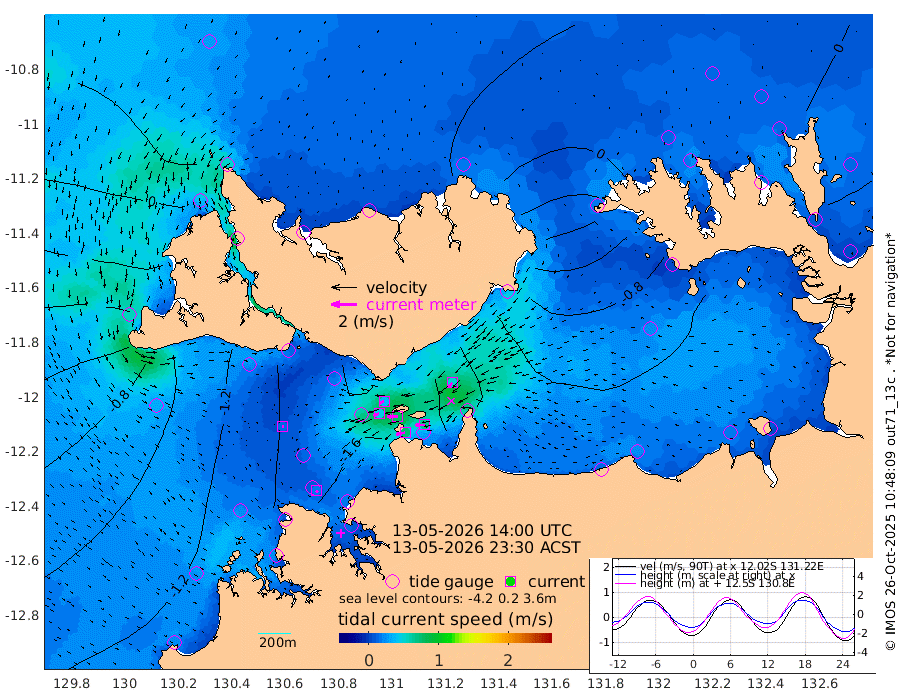 73cm/s -101T +4cm/s rms + 6cm/s 51T. Darwin_C1 52m 70cm/s -92T +4cm/s rms + 7cm/s -161T. Darwin_CW1 22m 44cm/s -106T +4cm/s rms + 8cm/s 61T. Darwin_CW2 34m 50cm/s -140T +3cm/s rms + 9cm/s 98T. Darwin_CW3 22m 80cm/s -90T +5cm/s rms + 7cm/s 88T. Darwin_C3 56m 39cm/s -115T +2cm/s rms + 9cm/s -126T. Darwin_CTbW 22m 13cm/s 120T +1cm/s rms + 1cm/s -47T. DARBGF 30m 18cm/s 139T +4cm/s rms + 3cm/s 80T. NRSDAR 19m 30cm Goodrich Bank -96cm Point Jenny -95cm Native Point -109cm Fish Reef -118cm Tapa Bay -23cm Point Fawcett (Offshore) -138cm Burge Point -98cm Munkunuwa -86cm Beagle A -126cm Parsons Bank -138cm Fenton Patches -136cm Hancox Shoal Area -151cm Nightcliff -157cm Darwin -130cm Charles Point Patches -138cm Glyde Point -143cm Chambers Bay -147cm Point Stuart -130cm Cape Hotham -130cm Christine Reef -163cm West Alligator Head -175cm East Field Island -114cm Two Hills Bay -120cm Camp Point -115cm Medina Inlet South -13cm South Barlow Point 5cm St. Asaph Bay 31cm Cape Van Dieman 23cm Snake Bay 25cm Cache Point 5cm Point Jahleel (Off) -35cm Cape Don 8cm Port Essington 9cm Smith Point - West 9cm NW Peacock Island 18cm North Of Jones Shoal 5cm Peacock Island -9cm Point David 8cm D'urville Point -12cm Copeland Island -8cm One Tree Point