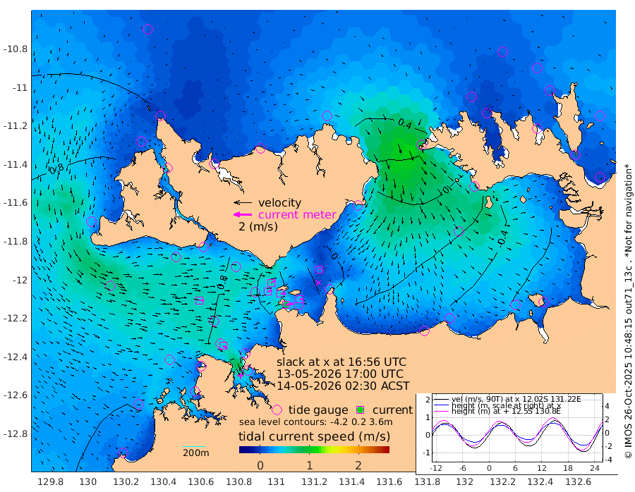 79cm/s 78T +4cm/s rms + 6cm/s 51T. Darwin_C1 52m 39cm/s 85T +4cm/s rms + 7cm/s -161T. Darwin_CW1 22m 49cm/s 74T +4cm/s rms + 8cm/s 61T. Darwin_CW2 34m 19cm/s 66T +3cm/s rms + 9cm/s 98T. Darwin_CW3 22m 51cm/s 87T +5cm/s rms + 7cm/s 88T. Darwin_C3 56m 54cm/s 63T +2cm/s rms + 9cm/s -126T. Darwin_CTbW 22m 53cm/s 91T +1cm/s rms + 1cm/s -47T. DARBGF 30m 53cm/s 121T +4cm/s rms + 3cm/s 80T. NRSDAR 19m 36cm Goodrich Bank 126cm Point Jenny 125cm Native Point 115cm Fish Reef 128cm Tapa Bay 91cm Point Fawcett (Offshore) 117cm Burge Point 122cm Munkunuwa 112cm Beagle A 116cm Parsons Bank 118cm Fenton Patches 112cm Hancox Shoal Area 121cm Nightcliff 107cm Darwin 113cm Charles Point Patches 51cm Glyde Point 5cm Chambers Bay -23cm Point Stuart 28cm Cape Hotham 6cm Christine Reef -32cm West Alligator Head -64cm East Field Island 5cm Two Hills Bay 6cm Camp Point 112cm Medina Inlet South 79cm South Barlow Point 68cm St. Asaph Bay 44cm Cape Van Dieman 39cm Snake Bay 42cm Cache Point 40cm Point Jahleel (Off) 42cm Cape Don 43cm Port Essington 51cm Smith Point - West 45cm NW Peacock Island 35cm North Of Jones Shoal 13cm Peacock Island 44cm Point David 52cm D'urville Point 45cm Copeland Island 39cm One Tree Point