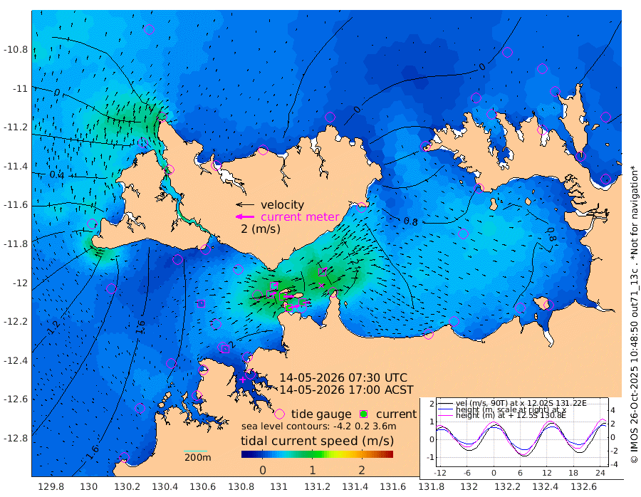 116cm/s 78T +4cm/s rms + 6cm/s 51T. Darwin_C1 52m 88cm/s 92T +4cm/s rms + 7cm/s -161T. Darwin_CW1 22m 71cm/s 73T +4cm/s rms + 8cm/s 61T. Darwin_CW2 34m 73cm/s 44T +3cm/s rms + 9cm/s 98T. Darwin_CW3 22m 113cm/s 89T +5cm/s rms + 7cm/s 88T. Darwin_C3 56m 58cm/s 66T +2cm/s rms + 9cm/s -126T. Darwin_CTbW 22m 9cm/s 50T +1cm/s rms + 1cm/s -47T. DARBGF 30m 7cm/s 49T +4cm/s rms + 3cm/s 80T. NRSDAR 19m -37cm Goodrich Bank 121cm Point Jenny 121cm Native Point 130cm Fish Reef 144cm Tapa Bay 31cm Point Fawcett (Offshore) 167cm Burge Point 134cm Munkunuwa 99cm Beagle A 160cm Parsons Bank 158cm Fenton Patches 159cm Hancox Shoal Area 174cm Nightcliff 182cm Darwin 152cm Charles Point Patches 139cm Glyde Point 118cm Chambers Bay 117cm Point Stuart 119cm Cape Hotham 108cm Christine Reef 127cm West Alligator Head 123cm East Field Island 95cm Two Hills Bay 104cm Camp Point 142cm Medina Inlet South 25cm South Barlow Point -5cm St. Asaph Bay -34cm Cape Van Dieman -25cm Snake Bay -33cm Cache Point -12cm Point Jahleel (Off) 37cm Cape Don -5cm Port Essington -8cm Smith Point - West -8cm NW Peacock Island -24cm North Of Jones Shoal -6cm Peacock Island 20cm Point David -3cm D'urville Point 23cm Copeland Island 16cm One Tree Point