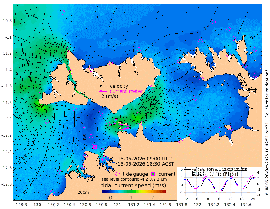 105cm/s 79T +4cm/s rms + 6cm/s 51T. Darwin_C1 52m 87cm/s 93T +4cm/s rms + 7cm/s -161T. Darwin_CW1 22m 57cm/s 70T +4cm/s rms + 8cm/s 61T. Darwin_CW2 34m 76cm/s 43T +3cm/s rms + 9cm/s 98T. Darwin_CW3 22m 101cm/s 90T +5cm/s rms + 7cm/s 88T. Darwin_C3 56m 46cm/s 65T +2cm/s rms + 9cm/s -126T. Darwin_CTbW 22m 27cm/s -75T +1cm/s rms + 1cm/s -47T. DARBGF 30m 37cm/s -47T +4cm/s rms + 3cm/s 80T. NRSDAR 19m -84cm Goodrich Bank 58cm Point Jenny 58cm Native Point 71cm Fish Reef 87cm Tapa Bay -35cm Point Fawcett (Offshore) 112cm Burge Point 78cm Munkunuwa 31cm Beagle A 116cm Parsons Bank 101cm Fenton Patches 121cm Hancox Shoal Area 124cm Nightcliff 141cm Darwin 101cm Charles Point Patches 125cm Glyde Point 134cm Chambers Bay 147cm Point Stuart 117cm Cape Hotham 121cm Christine Reef 164cm West Alligator Head 175cm East Field Island 104cm Two Hills Bay 110cm Camp Point 86cm Medina Inlet South -36cm South Barlow Point -65cm St. Asaph Bay -84cm Cape Van Dieman -74cm Snake Bay -81cm Cache Point -51cm Point Jahleel (Off) 10cm Cape Don -40cm Port Essington -45cm Smith Point - West -42cm NW Peacock Island -62cm North Of Jones Shoal -19cm Peacock Island 2cm Point David -37cm D'urville Point 7cm Copeland Island -6cm One Tree Point