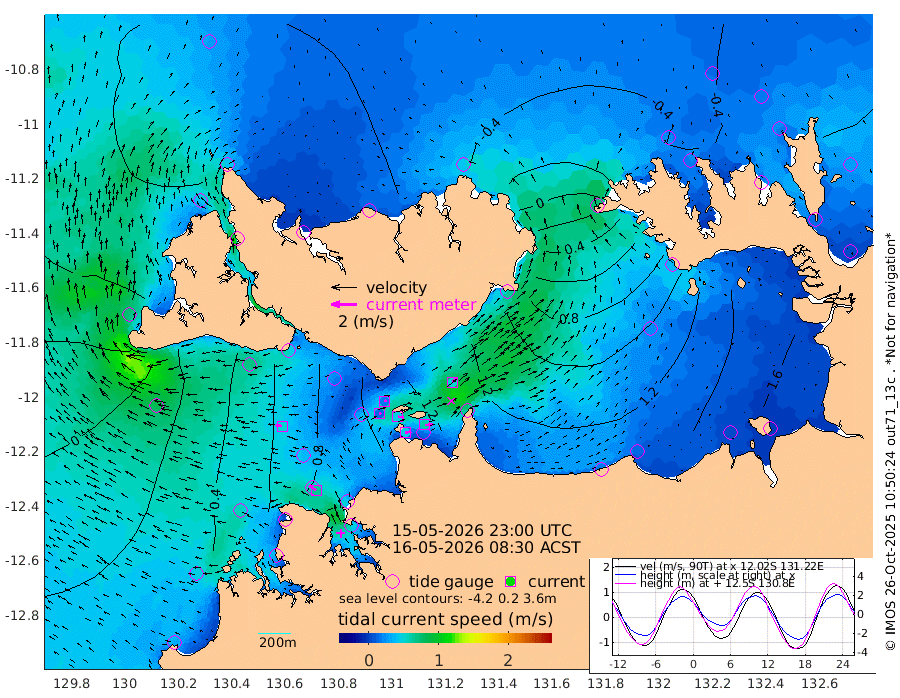46cm/s 80T +4cm/s rms + 6cm/s 51T. Darwin_C1 52m 59cm/s 89T +4cm/s rms + 7cm/s -161T. Darwin_CW1 22m 15cm/s 69T +4cm/s rms + 8cm/s 61T. Darwin_CW2 34m 50cm/s 40T +3cm/s rms + 9cm/s 98T. Darwin_CW3 22m 47cm/s 94T +5cm/s rms + 7cm/s 88T. Darwin_C3 56m 17cm/s 69T +2cm/s rms + 9cm/s -126T. Darwin_CTbW 22m 50cm/s -81T +1cm/s rms + 1cm/s -47T. DARBGF 30m 65cm/s -53T +4cm/s rms + 3cm/s 80T. NRSDAR 19m -40cm Goodrich Bank 27cm Point Jenny 24cm Native Point 32cm Fish Reef 45cm Tapa Bay -24cm Point Fawcett (Offshore) 57cm Burge Point 14cm Munkunuwa 14cm Beagle A 52cm Parsons Bank 57cm Fenton Patches 78cm Hancox Shoal Area 75cm Nightcliff 84cm Darwin 64cm Charles Point Patches 111cm Glyde Point 170cm Chambers Bay 180cm Point Stuart 120cm Cape Hotham 159cm Christine Reef 204cm West Alligator Head 237cm East Field Island 127cm Two Hills Bay 130cm Camp Point 38cm Medina Inlet South -37cm South Barlow Point -39cm St. Asaph Bay -48cm Cape Van Dieman -46cm Snake Bay -34cm Cache Point -16cm Point Jahleel (Off) 25cm Cape Don -17cm Port Essington -19cm Smith Point - West -17cm NW Peacock Island -22cm North Of Jones Shoal -8cm Peacock Island -2cm Point David -19cm D'urville Point 3cm Copeland Island 0cm One Tree Point