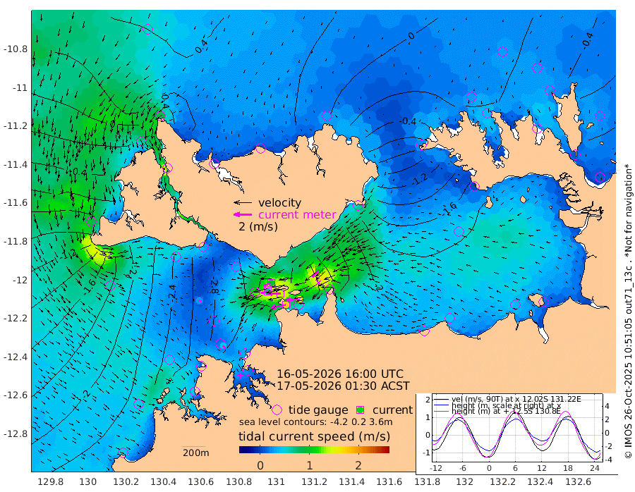 172cm/s -101T +4cm/s rms + 6cm/s 51T. Darwin_C1 52m 154cm/s -92T +4cm/s rms + 7cm/s -161T. Darwin_CW1 22m 71cm/s -105T +4cm/s rms + 8cm/s 61T. Darwin_CW2 34m 109cm/s -138T +3cm/s rms + 9cm/s 98T. Darwin_CW3 22m 141cm/s -90T +5cm/s rms + 7cm/s 88T. Darwin_C3 56m 88cm/s -116T +2cm/s rms + 9cm/s -126T. Darwin_CTbW 22m 27cm/s 112T +1cm/s rms + 1cm/s -47T. DARBGF 30m 40cm/s 137T +4cm/s rms + 3cm/s 80T. NRSDAR 19m 30cm Goodrich Bank -165cm Point Jenny -164cm Native Point -181cm Fish Reef -202cm Tapa Bay -46cm Point Fawcett (Offshore) -231cm Burge Point -164cm Munkunuwa -138cm Beagle A -225cm Parsons Bank -223cm Fenton Patches -239cm Hancox Shoal Area -243cm Nightcliff -268cm Darwin -229cm Charles Point Patches -238cm Glyde Point -242cm Chambers Bay -254cm Point Stuart -223cm Cape Hotham -228cm Christine Reef -276cm West Alligator Head -292cm East Field Island -203cm Two Hills Bay -210cm Camp Point -193cm Medina Inlet South -33cm South Barlow Point 0cm St. Asaph Bay 31cm Cape Van Dieman 19cm Snake Bay 20cm Cache Point -12cm Point Jahleel (Off) -86cm Cape Don -23cm Port Essington -20cm Smith Point - West -23cm NW Peacock Island 4cm North Of Jones Shoal -1cm Peacock Island -65cm Point David -28cm D'urville Point -69cm Copeland Island -58cm One Tree Point
