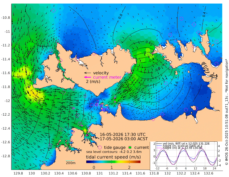 22cm/s -101T +4cm/s rms + 6cm/s 51T. Darwin_C1 52m 36cm/s -94T +4cm/s rms + 7cm/s -161T. Darwin_CW1 22m 18cm/s 71T +4cm/s rms + 8cm/s 61T. Darwin_CW2 34m 66cm/s -144T +3cm/s rms + 9cm/s 98T. Darwin_CW3 22m 18cm/s -80T +5cm/s rms + 7cm/s 88T. Darwin_C3 56m 9cm/s 61T +2cm/s rms + 9cm/s -126T. Darwin_CTbW 22m 84cm/s 95T +1cm/s rms + 1cm/s -47T. DARBGF 30m 92cm/s 126T +4cm/s rms + 3cm/s 80T. NRSDAR 19m 78cm Goodrich Bank 38cm Point Jenny 38cm Native Point 27cm Fish Reef 16cm Tapa Bay 90cm Point Fawcett (Offshore) -5cm Burge Point 47cm Munkunuwa 49cm Beagle A -9cm Parsons Bank -4cm Fenton Patches -35cm Hancox Shoal Area -21cm Nightcliff -43cm Darwin -10cm Charles Point Patches -99cm Glyde Point -177cm Chambers Bay -206cm Point Stuart -119cm Cape Hotham -161cm Christine Reef -234cm West Alligator Head -281cm East Field Island -136cm Two Hills Bay -140cm Camp Point 18cm Medina Inlet South 89cm South Barlow Point 97cm St. Asaph Bay 86cm Cape Van Dieman 77cm Snake Bay 74cm Cache Point 47cm Point Jahleel (Off) -7cm Cape Don 39cm Port Essington 46cm Smith Point - West 35cm NW Peacock Island 52cm North Of Jones Shoal 16cm Peacock Island -6cm Point David 37cm D'urville Point -11cm Copeland Island -1cm One Tree Point